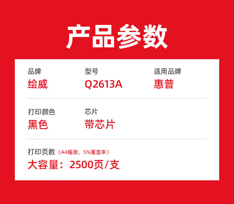 绘威Q2613A大容量硒鼓 适用惠普HP LaserJet 1300 1300N 1300XL打印机墨盒 墨粉盒