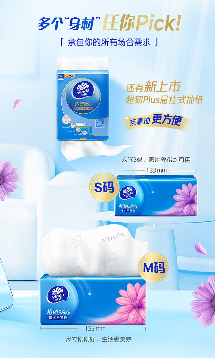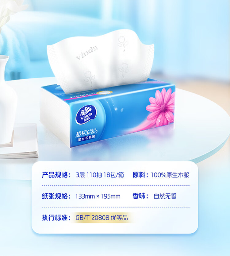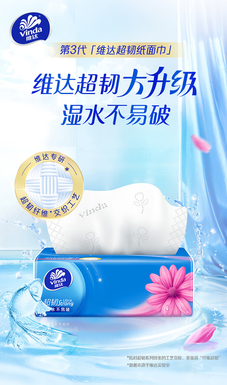 维达超韧抽纸 133mm*195mm 3层110抽/包【QN】