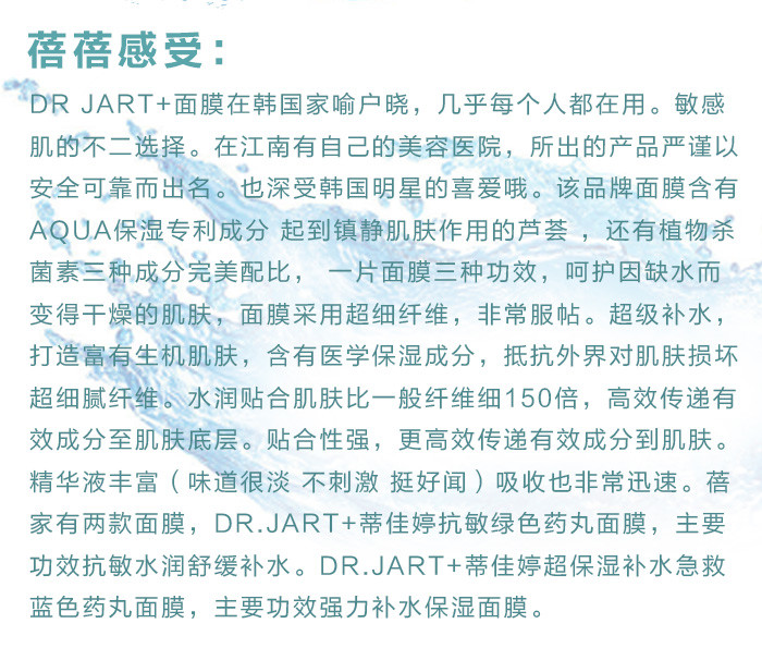 【抄底囤货】Dr.Jart+/蒂佳婷面膜补水保湿蓝丸面膜*4~