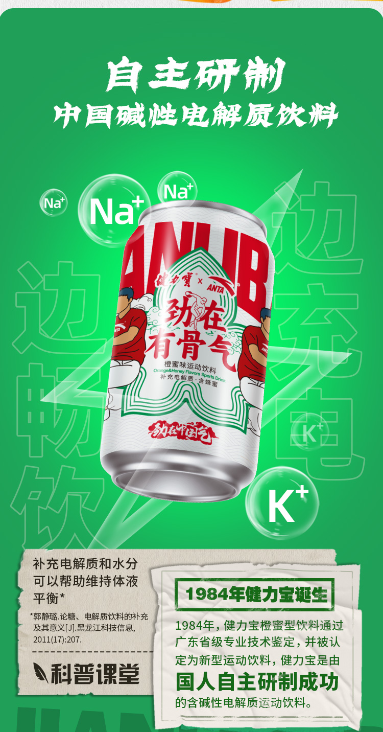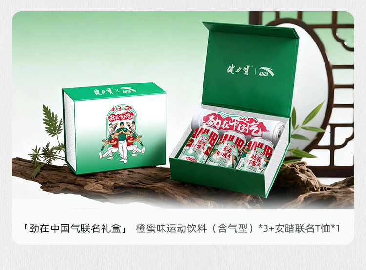 【安踏联名礼盒】健力宝橙蜜味330ML*3罐+联名T恤*1件 电解质饮料