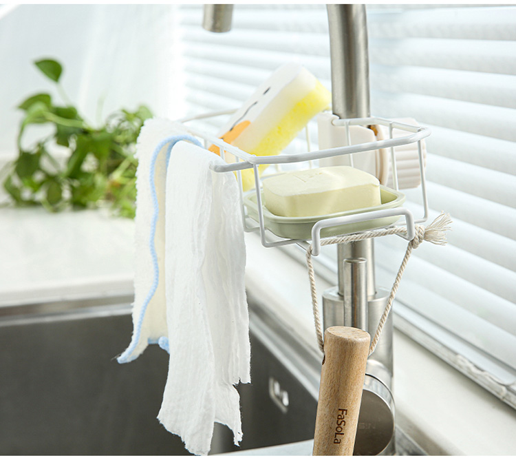 FaSoLa 水龙头置物架 厨房沥水家用免打孔水槽水池抹布夹式收纳架