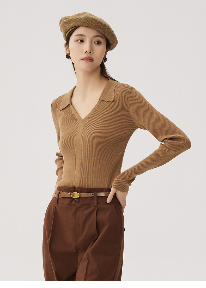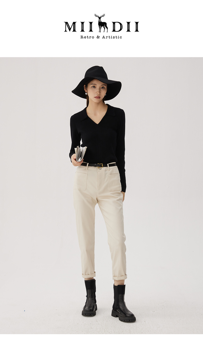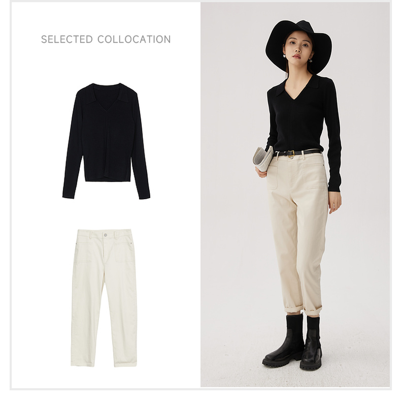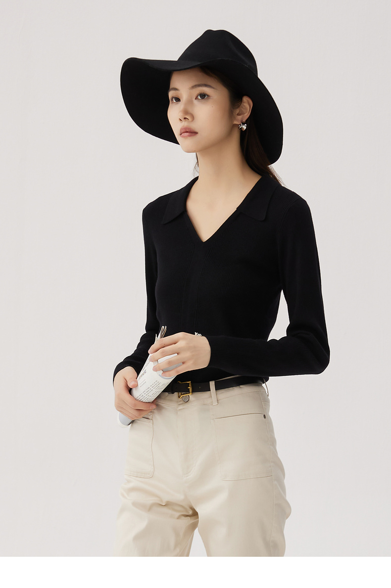 谜底套头针织衫长袖女士2024秋季新品极简风V领修身毛衣243MZ1275