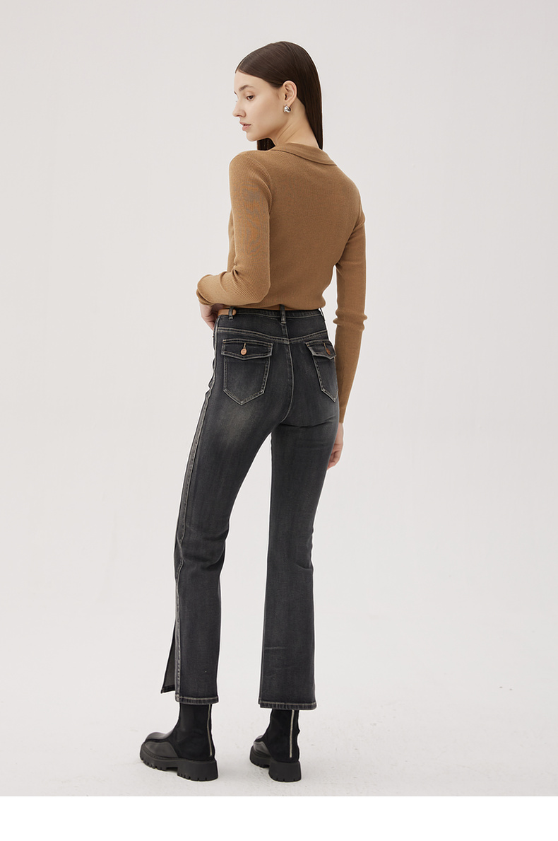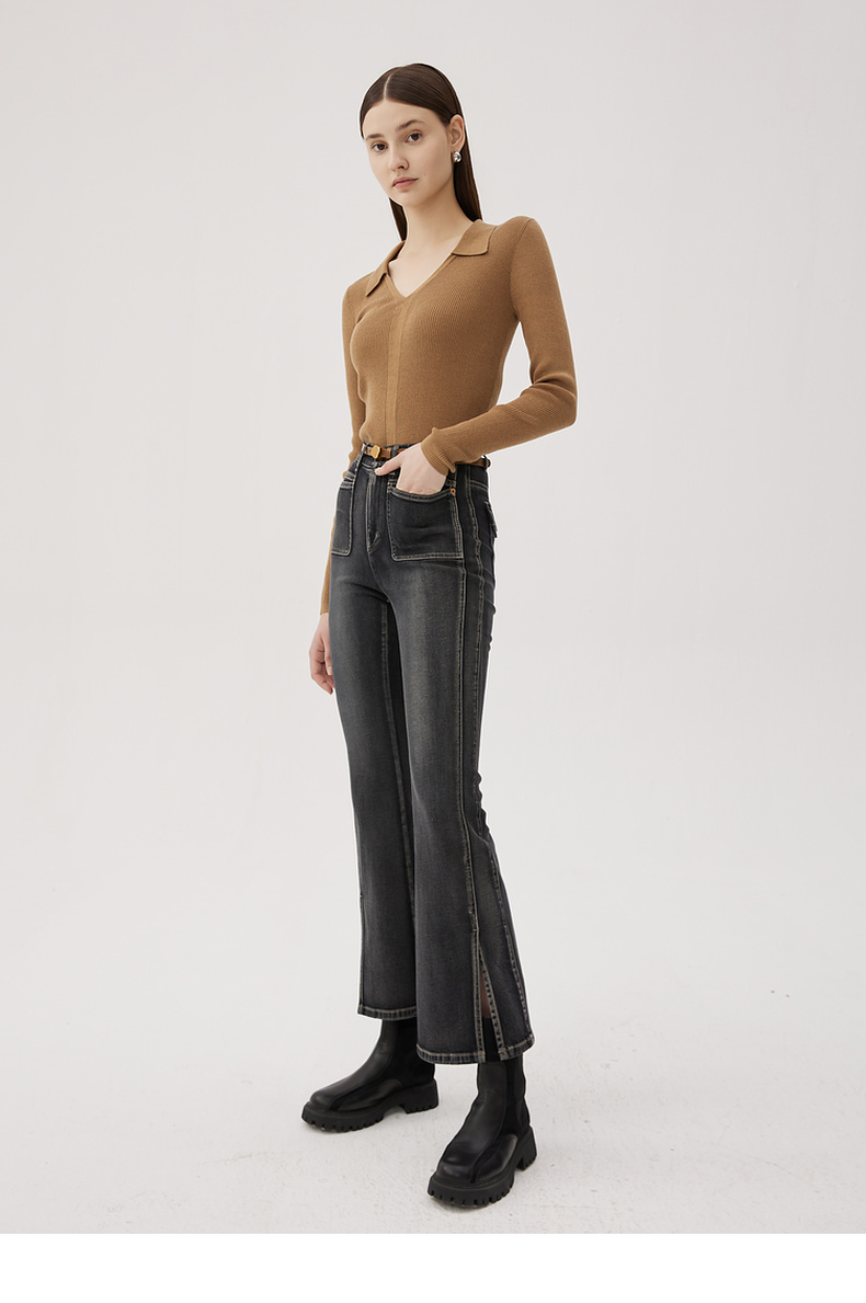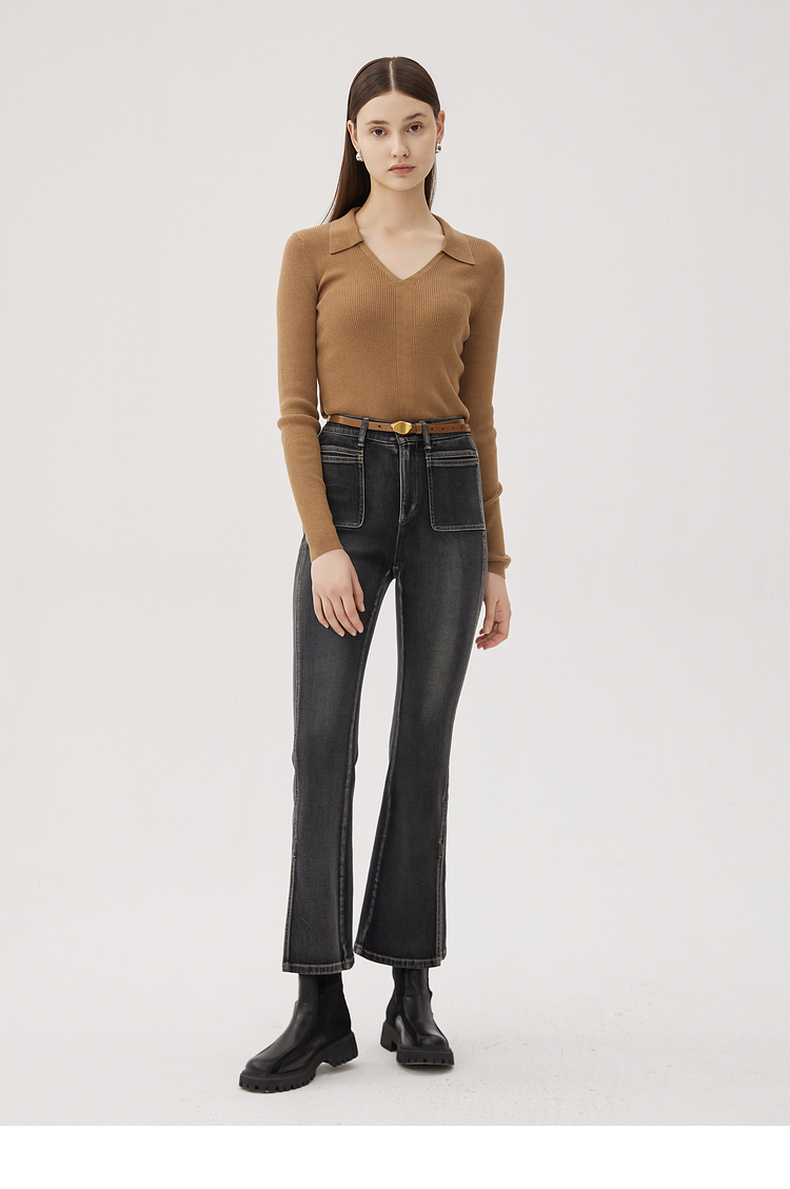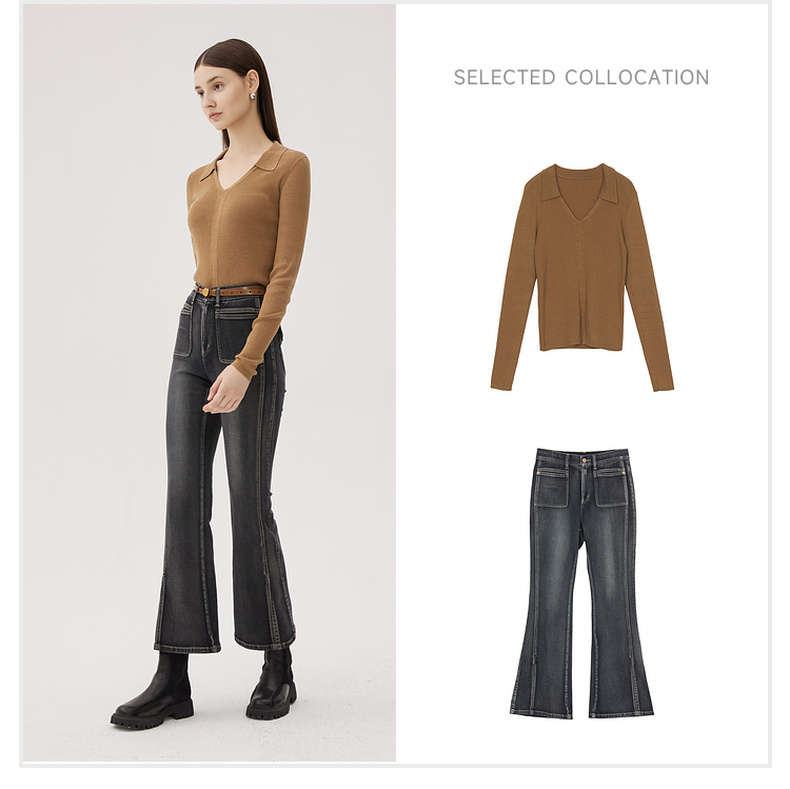 谜底套头针织衫长袖女士2024秋季新品极简风V领修身毛衣243MZ1275