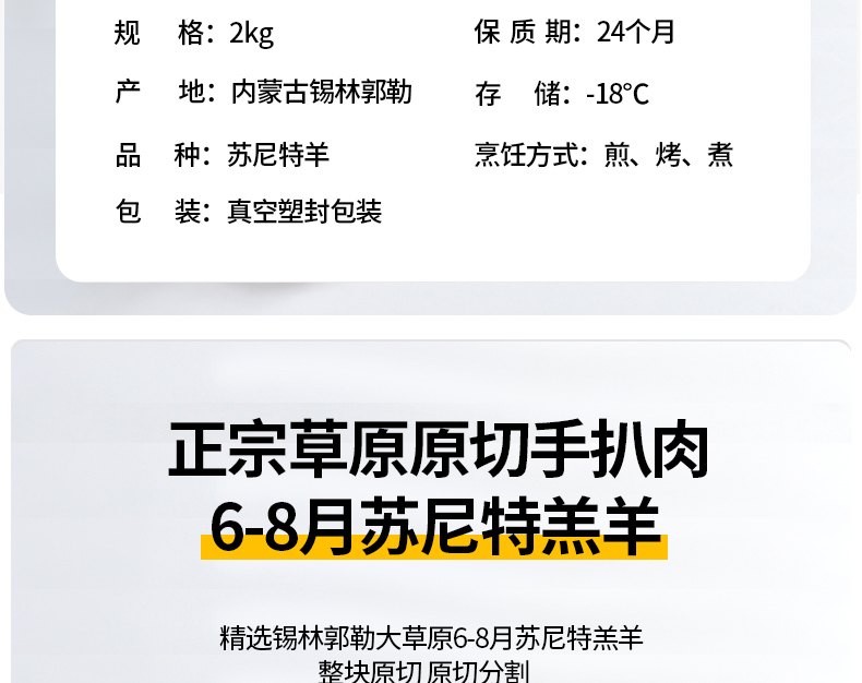 【【自营】【地标产品专供】正宗锡盟苏尼特羔羊手抓肉 8斤装