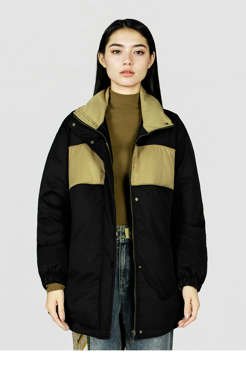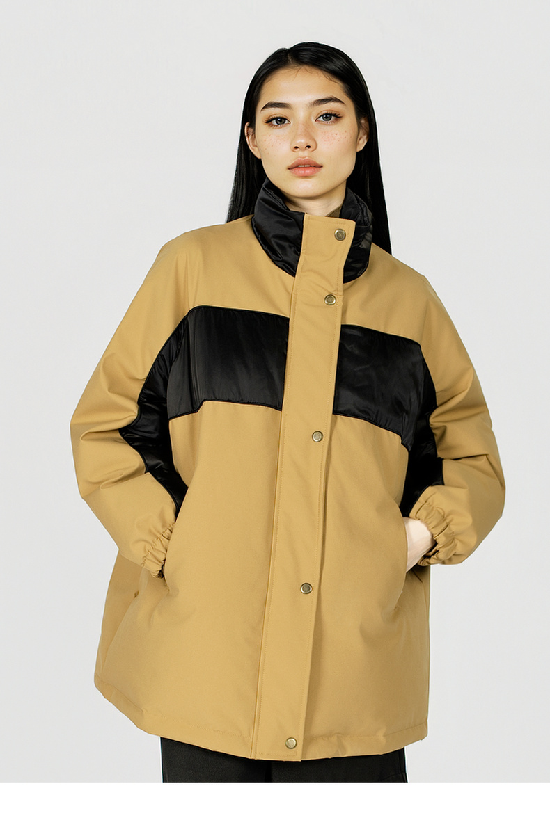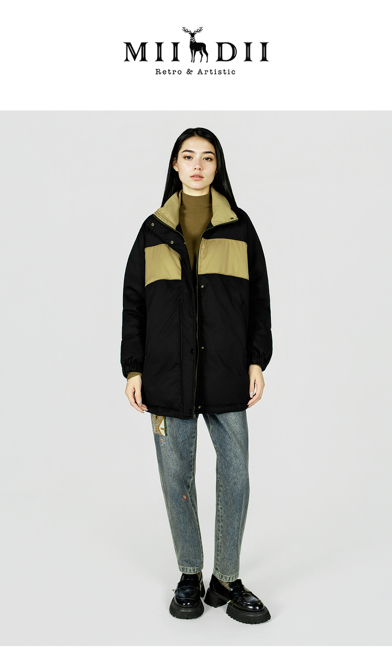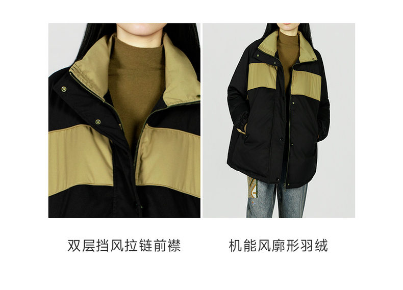 谜底立领羽绒服女2025冬季新款休闲宽松拼接短款面包服257MY7866