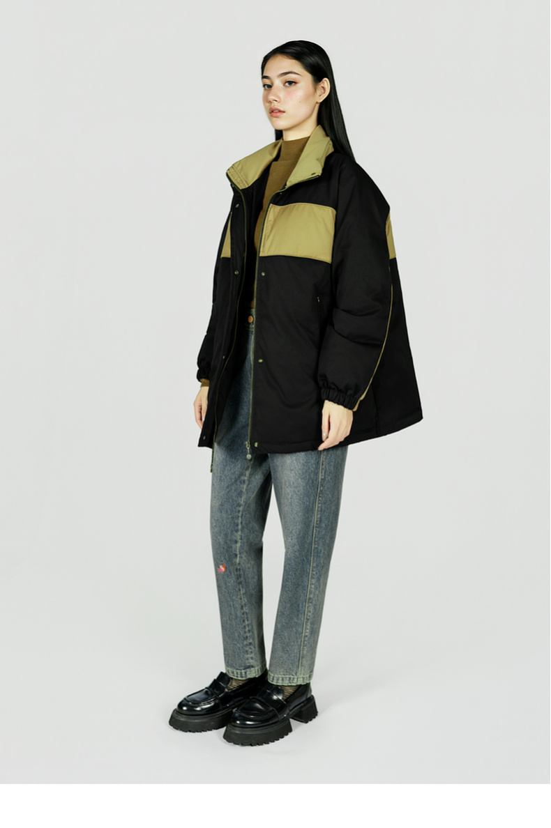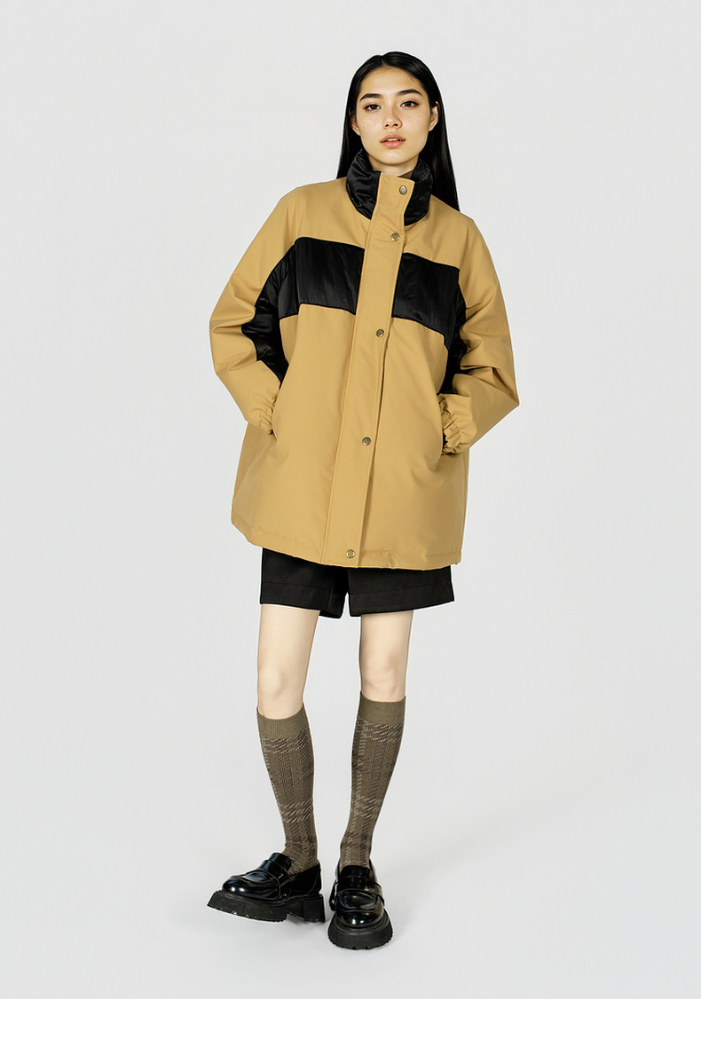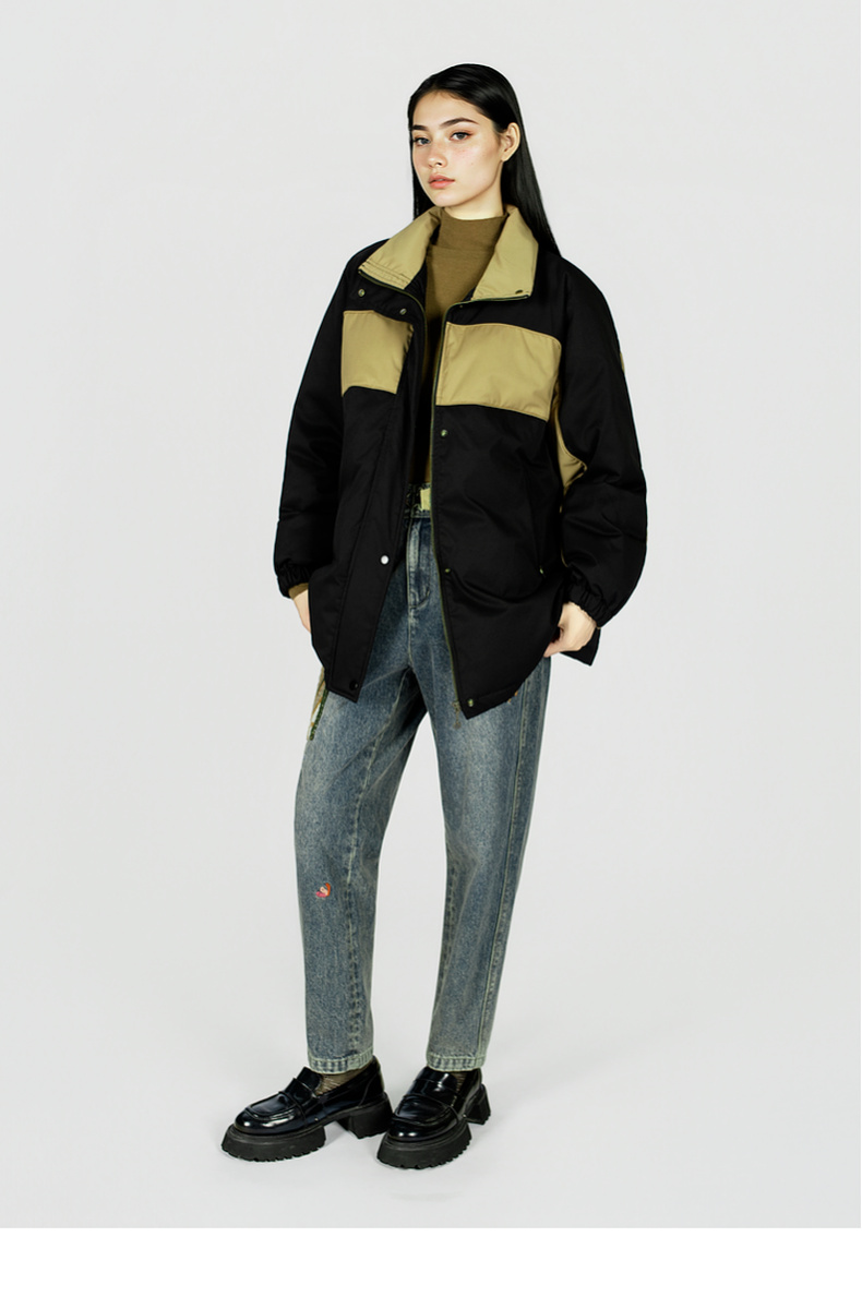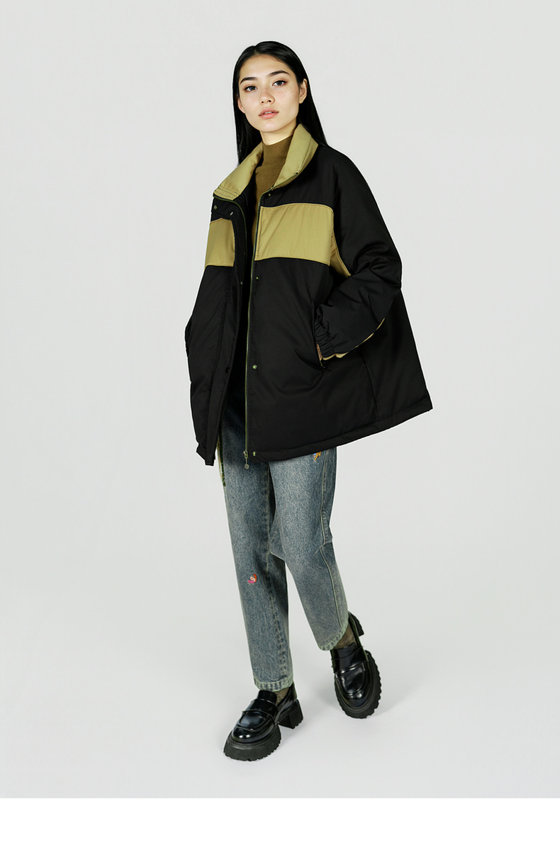 谜底立领羽绒服女2025冬季新款休闲宽松拼接短款面包服257MY7866