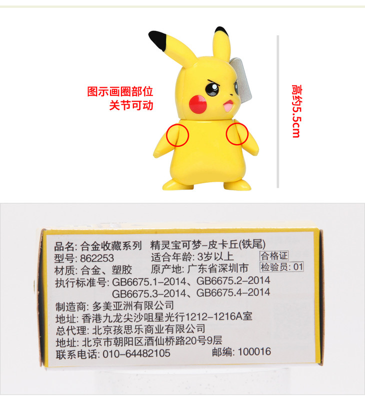 多美卡 合金收藏系列 精灵宝可梦 皮卡丘(铁尾) 862253