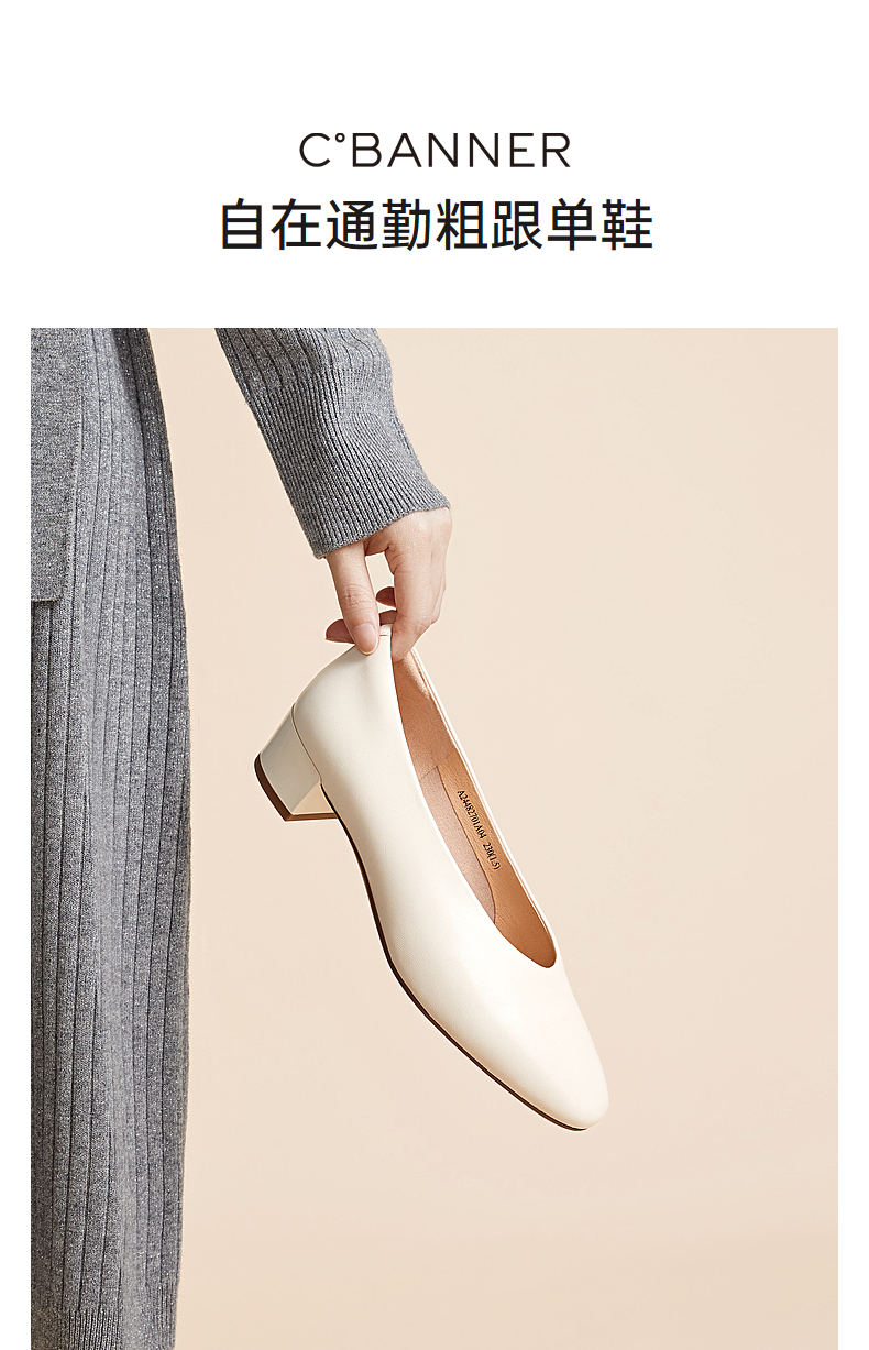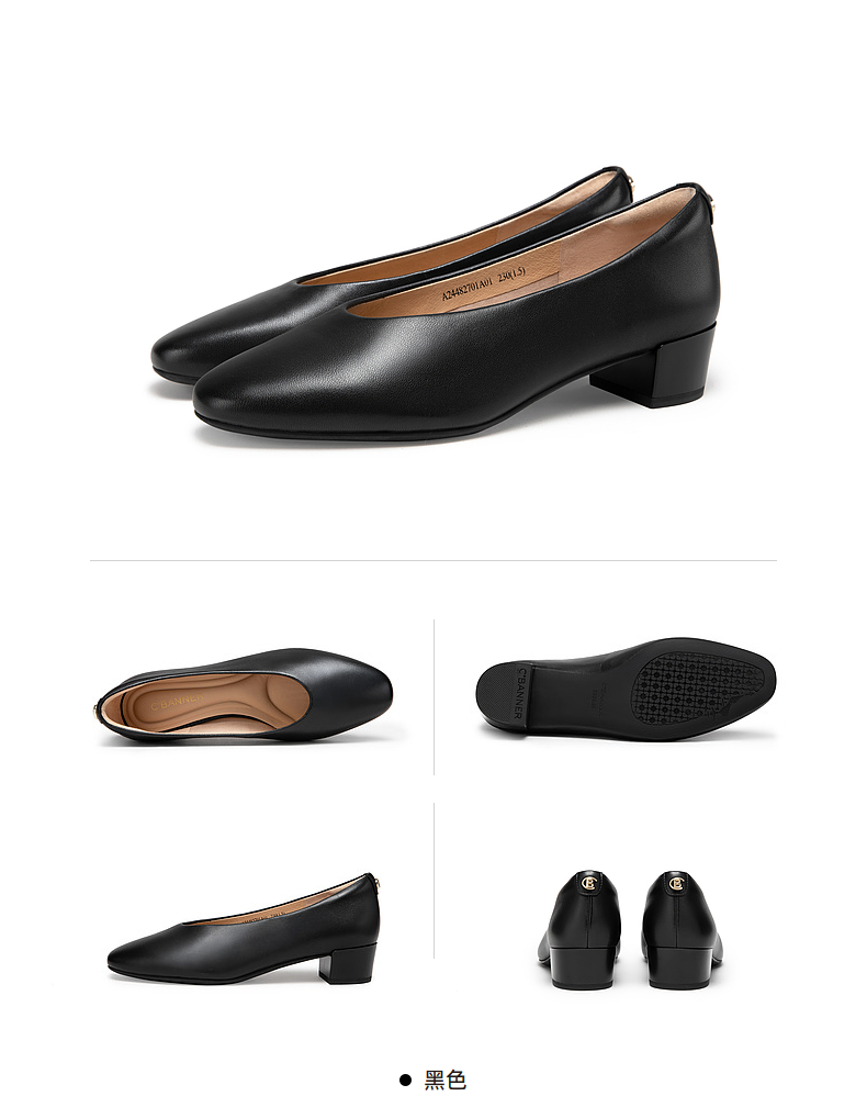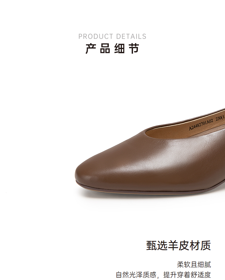 【静音系列】千百度中跟羊皮单鞋女秋季裸色小香风晚晚鞋A24482701/A24482703/A24482702/A24482704