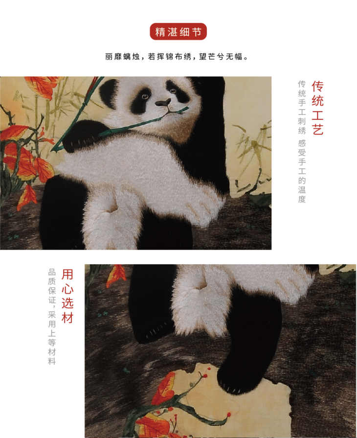 蜀锦双面绣新中式楠木座屏—憨态