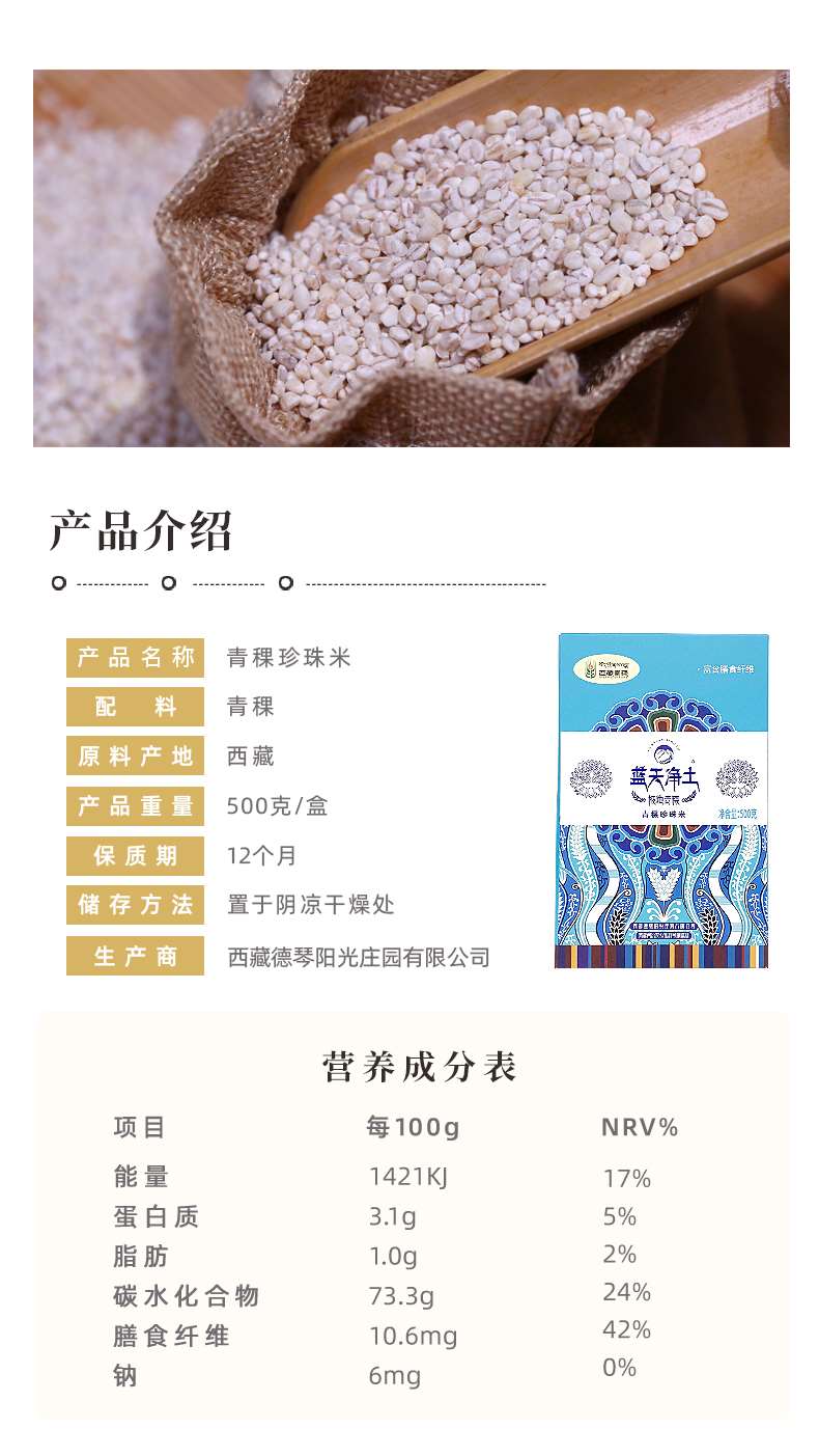 蓝天净土 青稞珍珠米#500g/盒*1