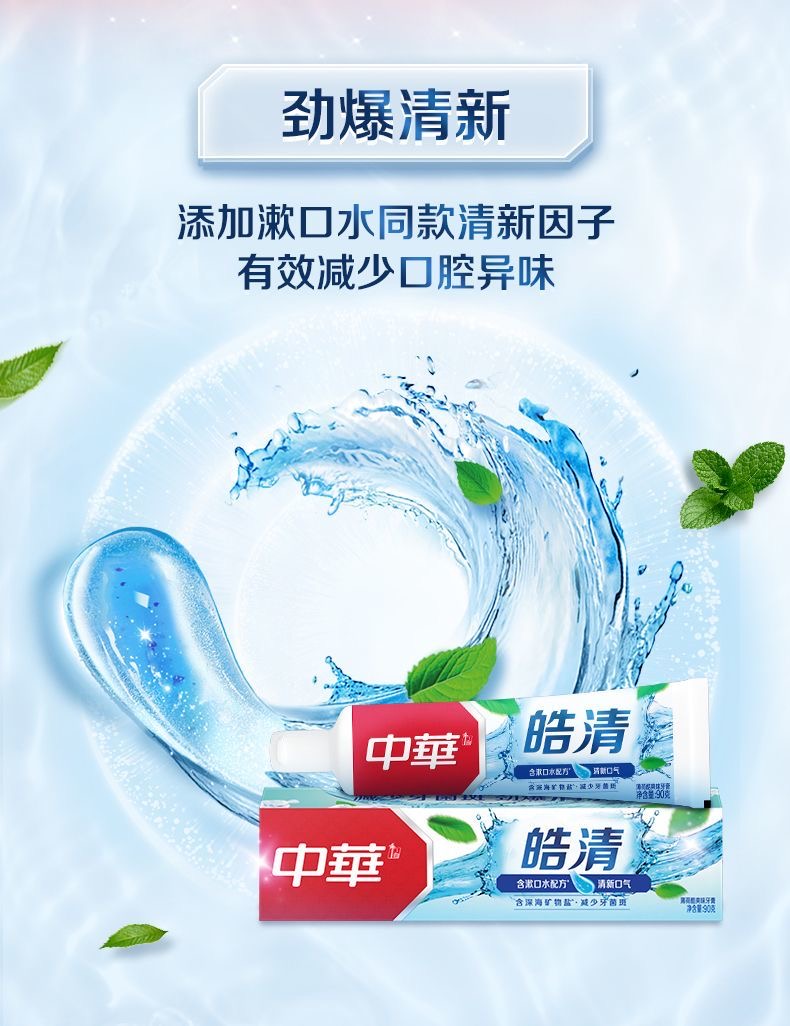 【秒杀特惠】中华皓清牙膏180g*3支 送中华餐盒+漱口水80g