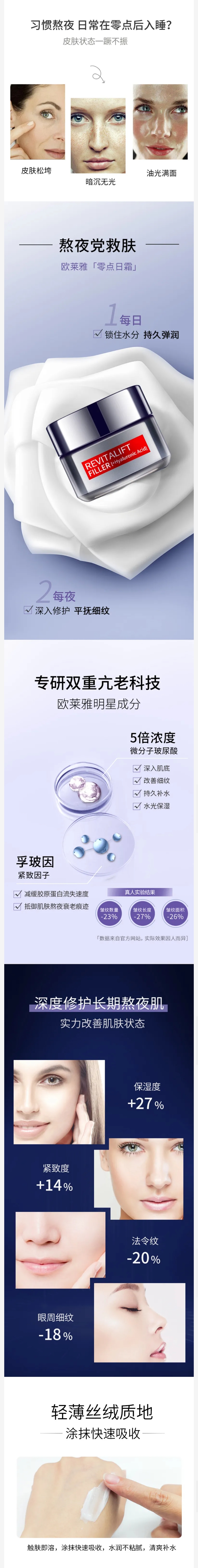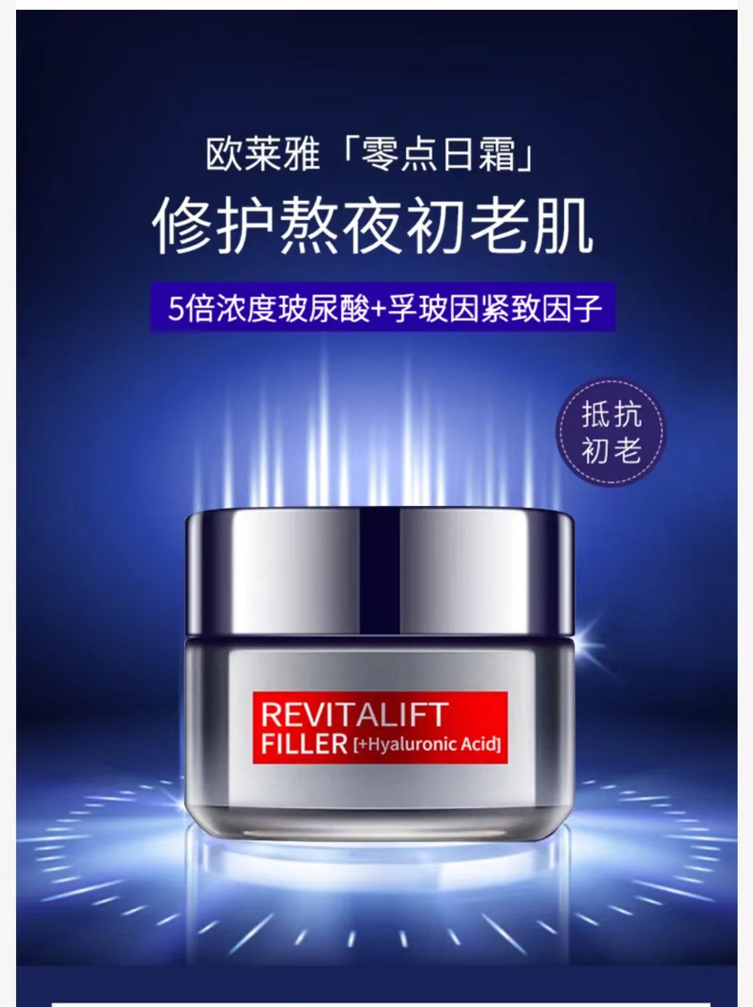 欧莱雅·面霜 复颜玻尿酸零点霜50ML零点日霜保湿滋润补水