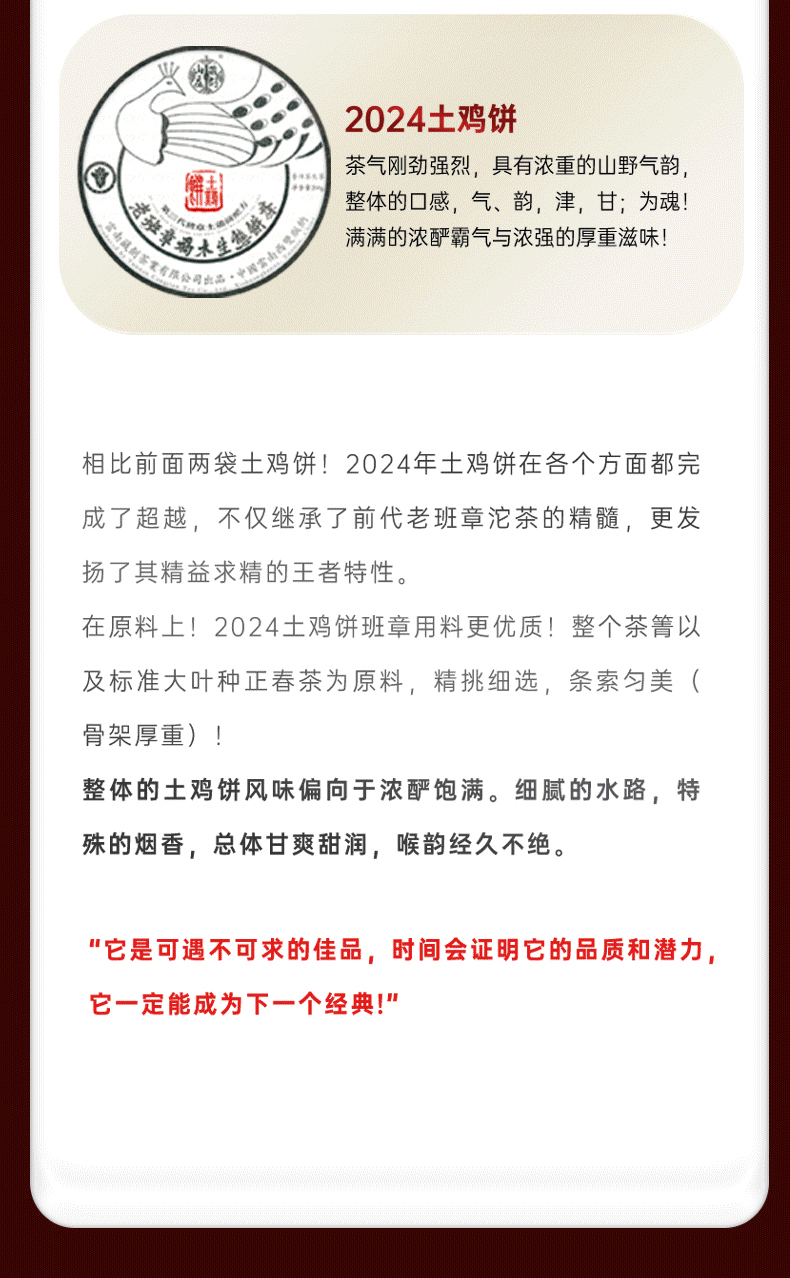【藏剑山庄】2024年 班章经典生态土鸡饼第三代珍藏 200g/饼!满五赠一!