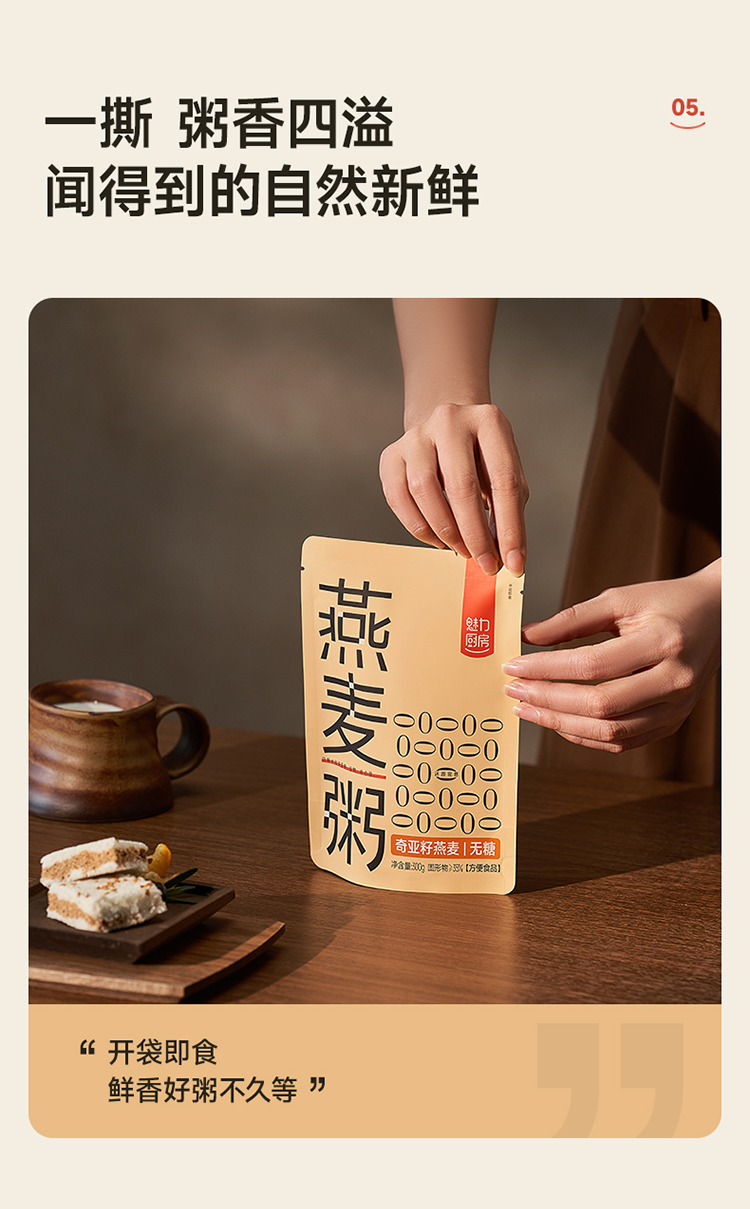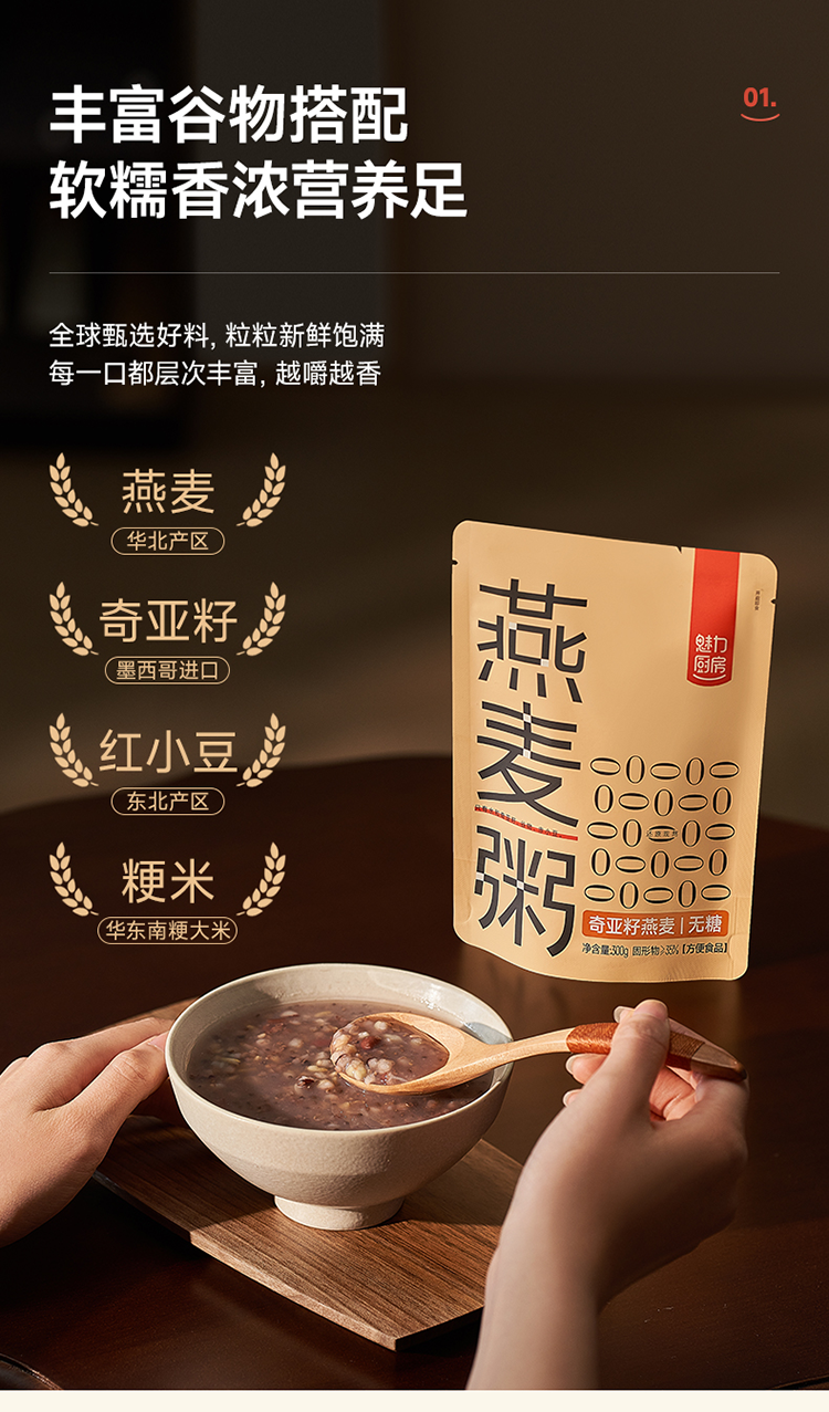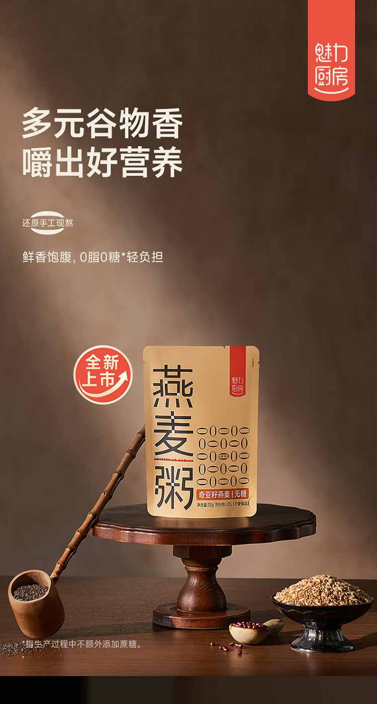 魅力厨房 奇亚籽燕麦粥(无糖)300g*9