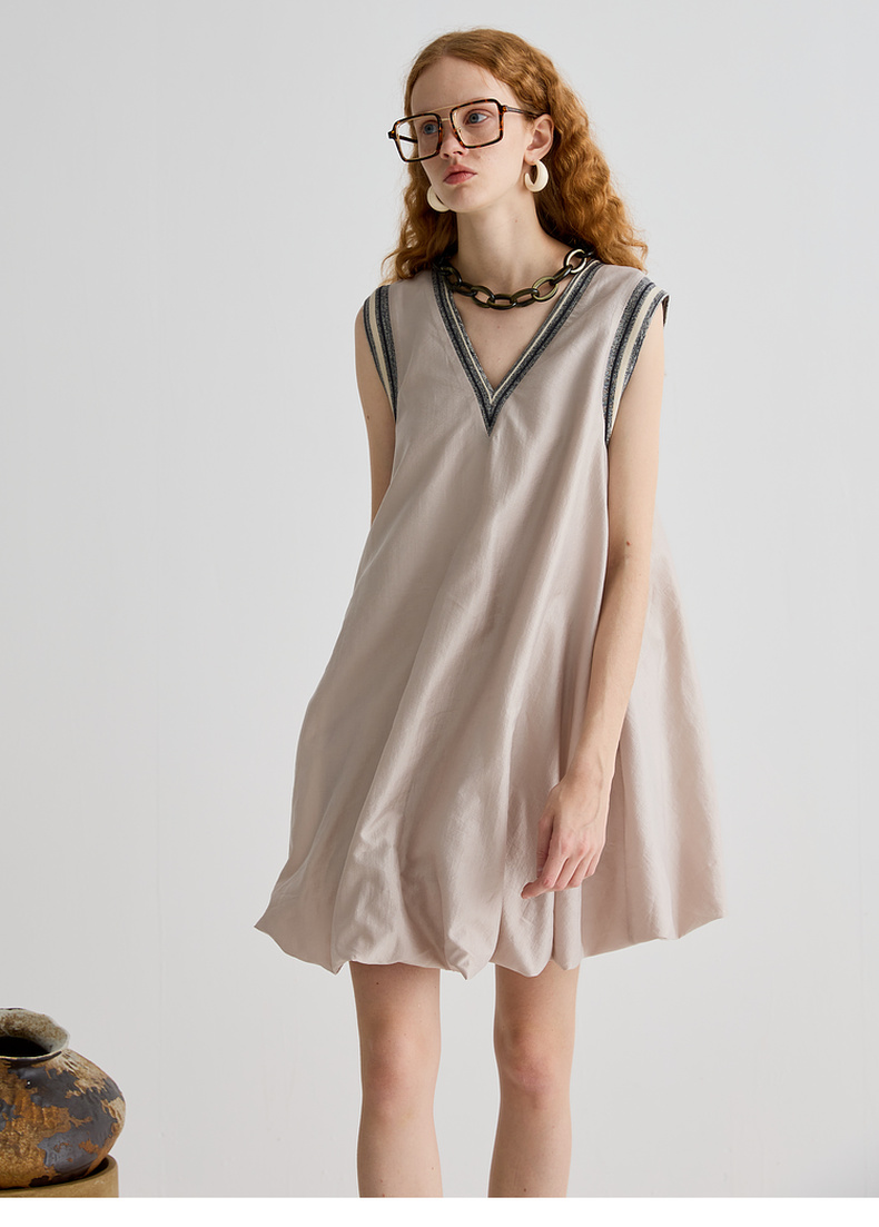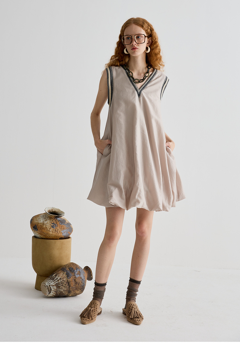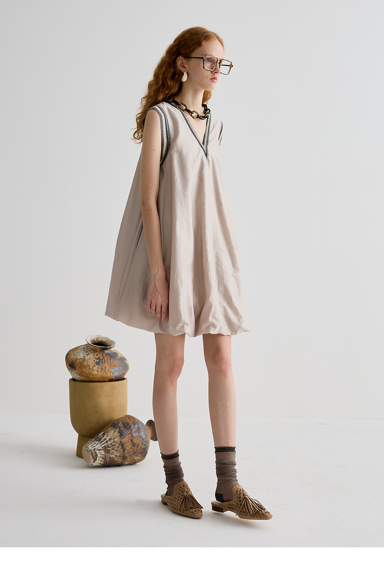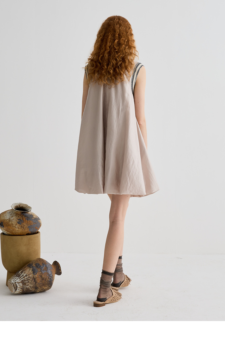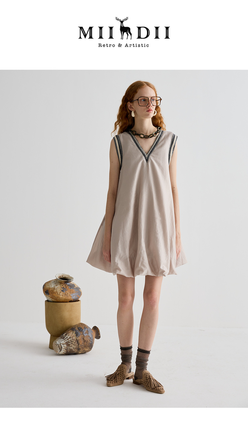 谜底连衣裙无袖女2025夏季新品复古风蓬蓬裙合身A型短裙252ML0566