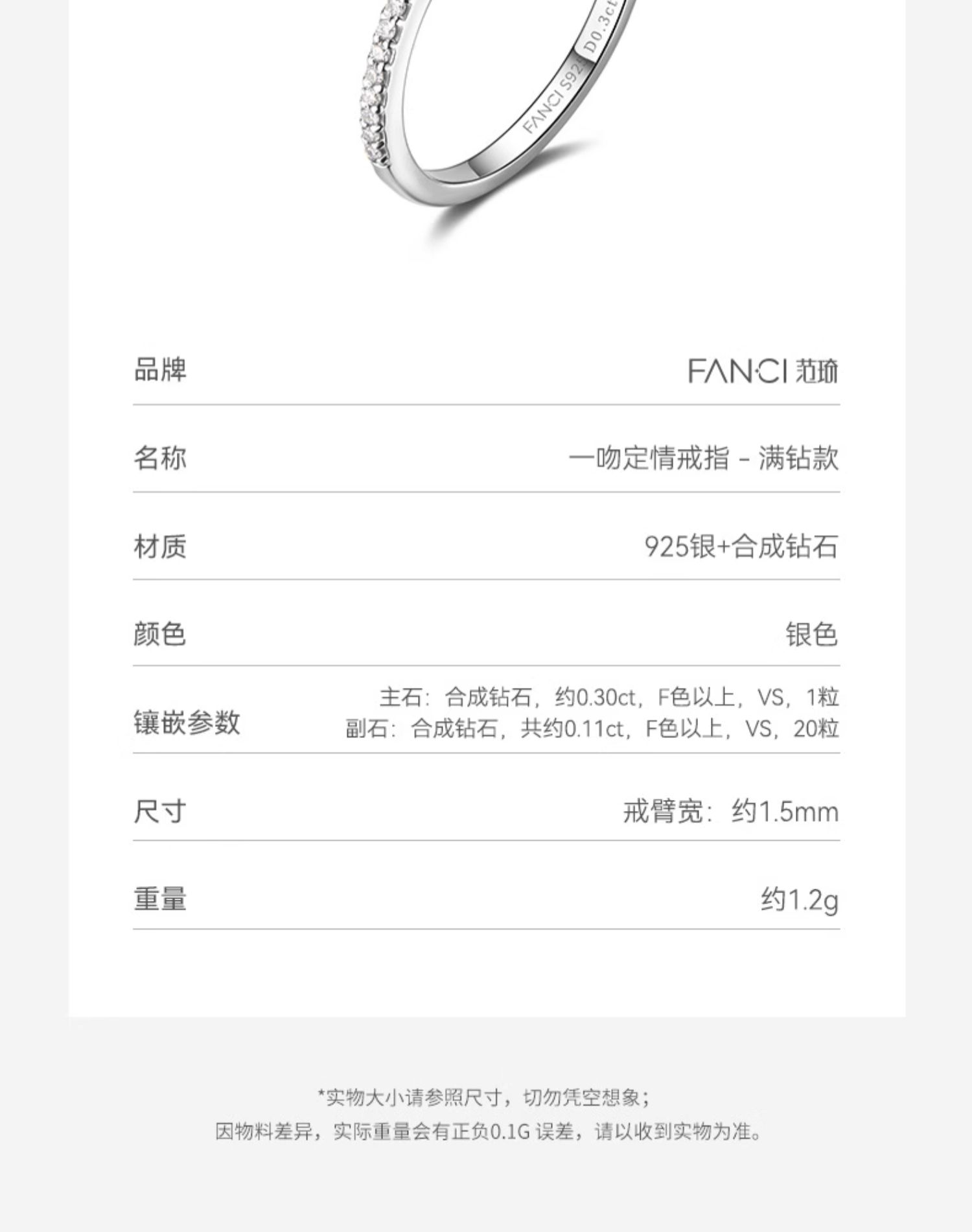 【培育钻石】Fanci范琦珠宝 【一吻定情戒指】满钻款50分钻戒求婚戒指