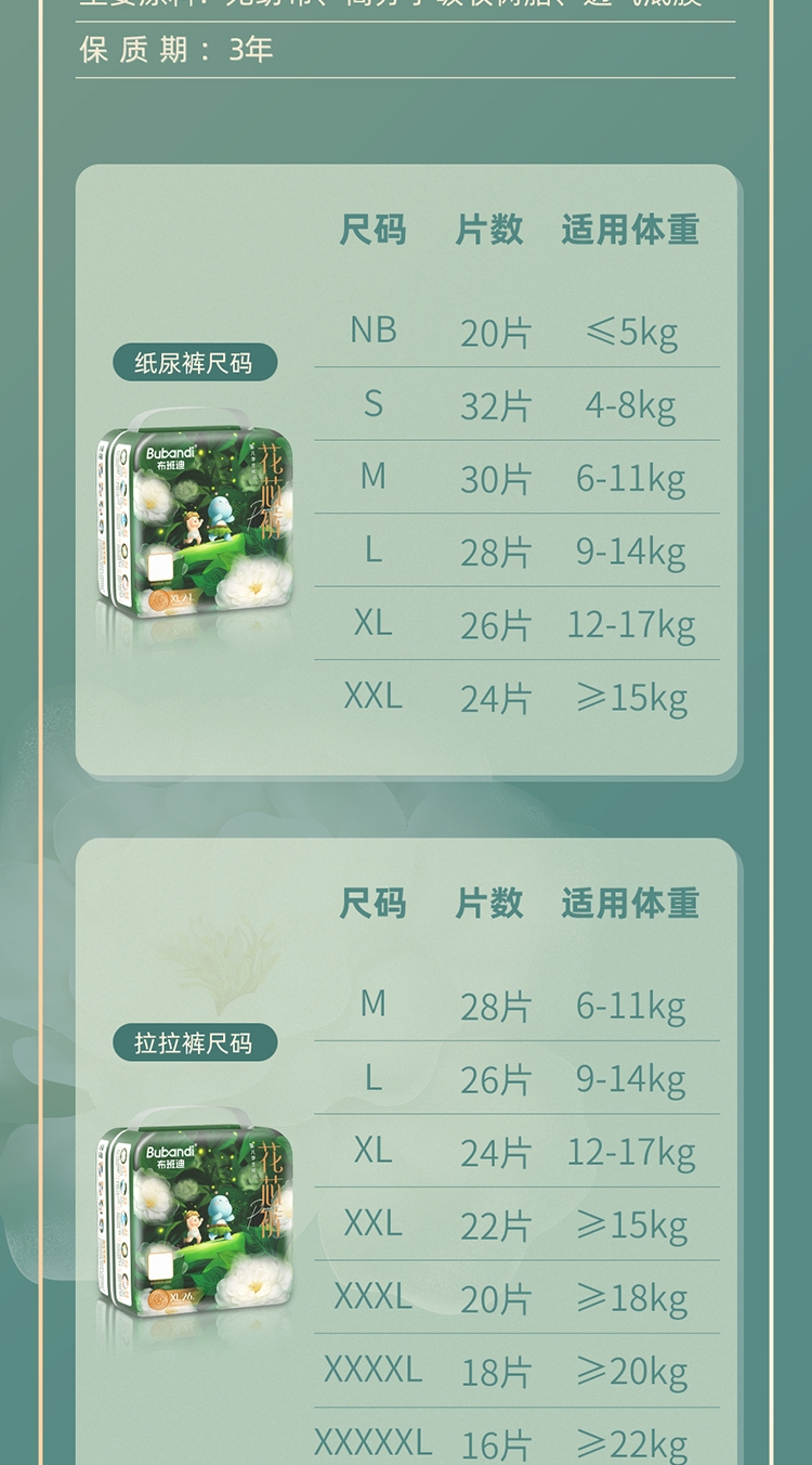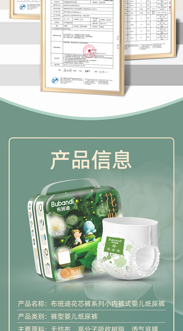 【山茶油精华】布班迪花芯裤系列尿不湿 山茶油精华滋润舒缓远离刺激泛红