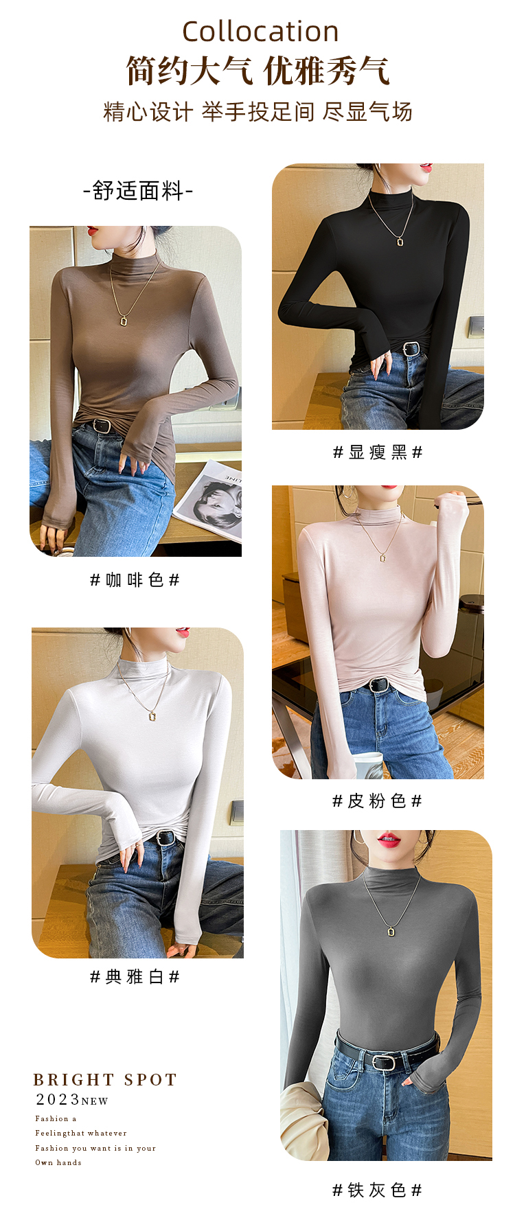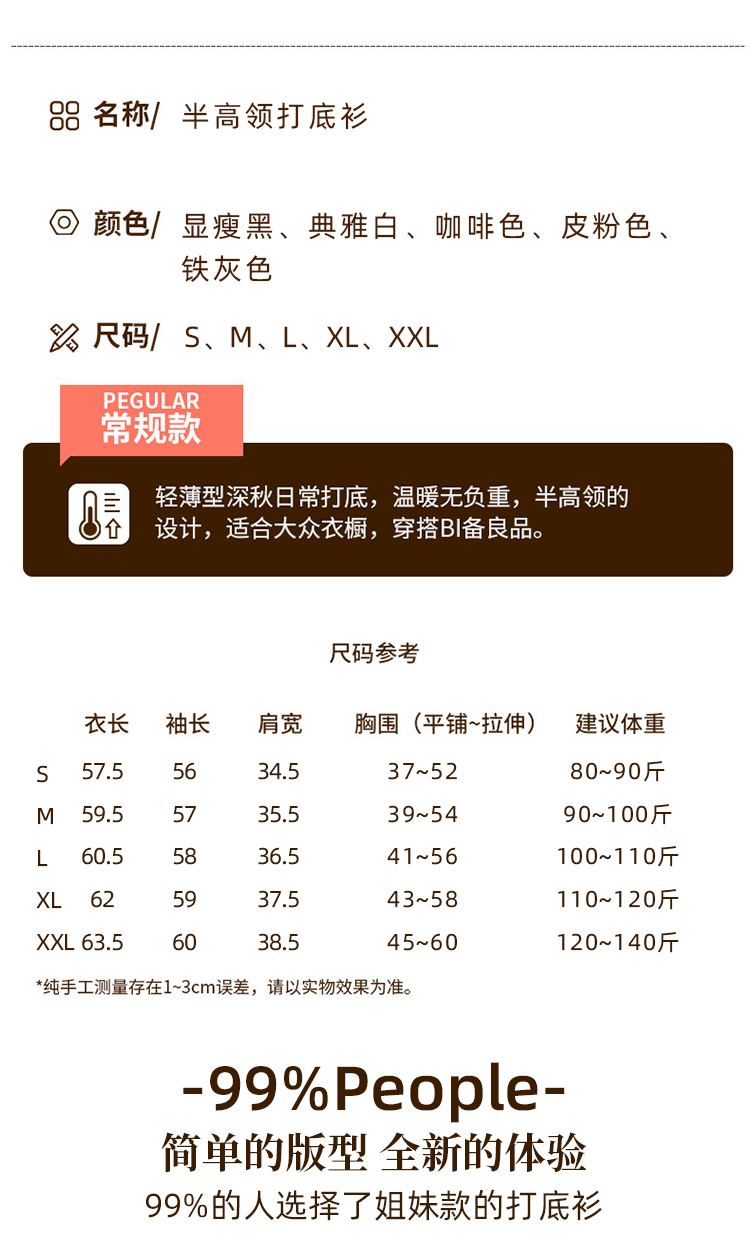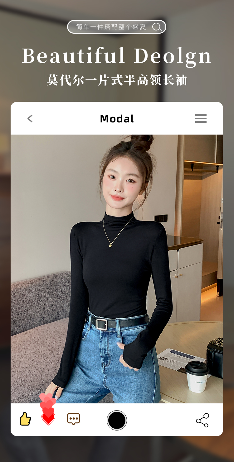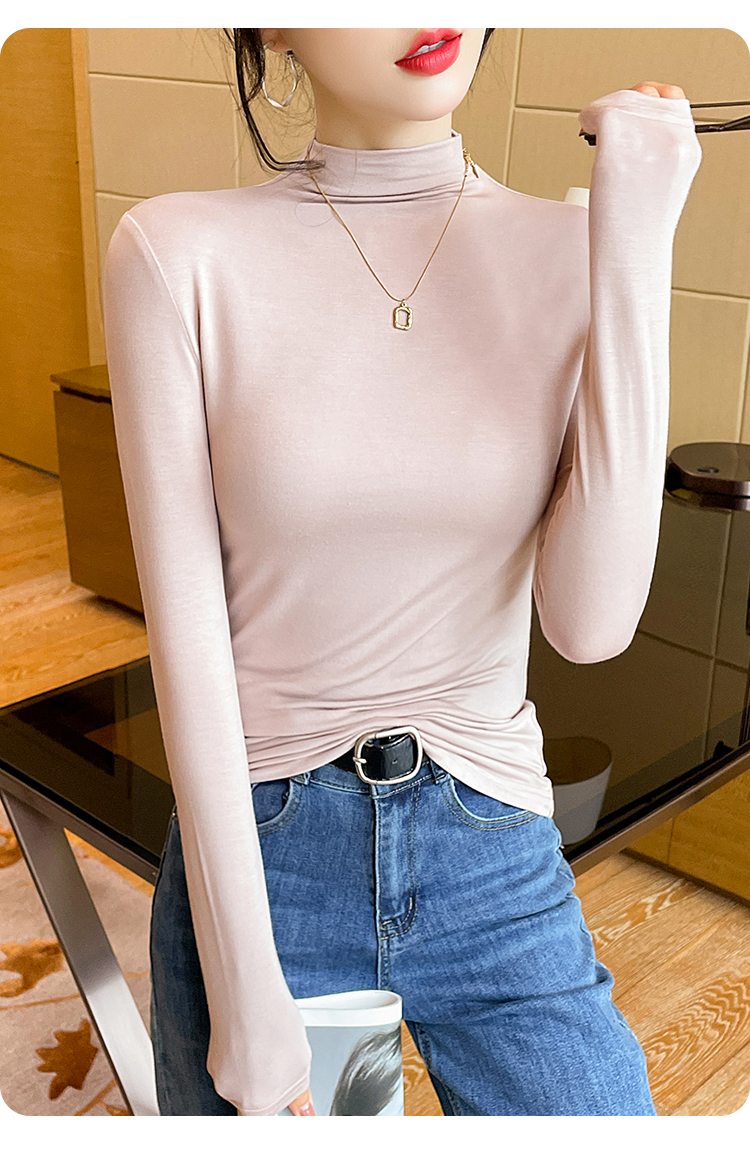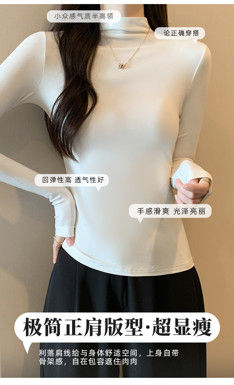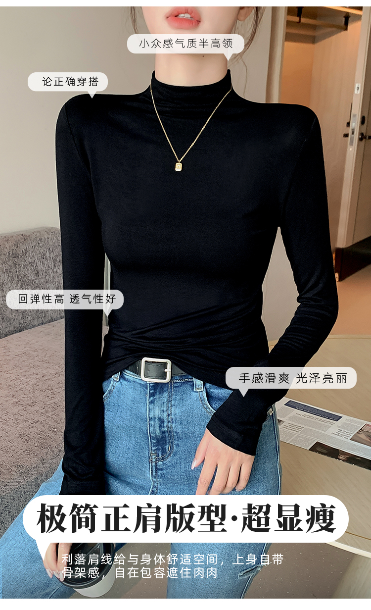 黑色半高领打底衫女春秋内搭修身面膜长袖t恤中领薄款上衣