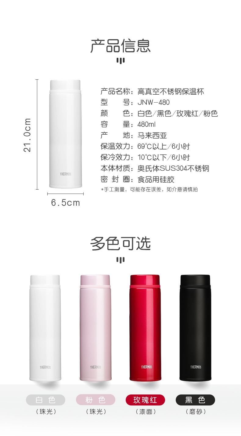膳魔师THERMOS不锈钢长效保温杯简约便携水杯JNW-480