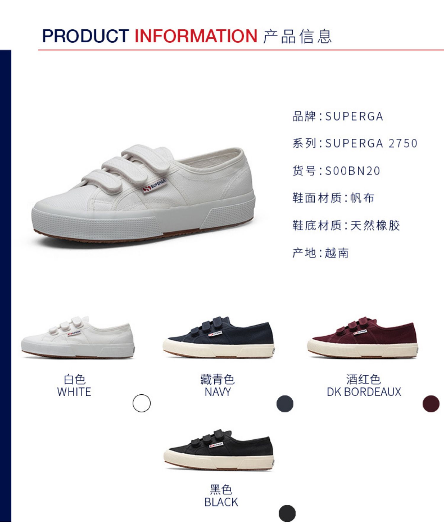 SUPERGA帆布鞋 2020秋冬款魔术贴防滑休闲百搭学生小白鞋板鞋男女