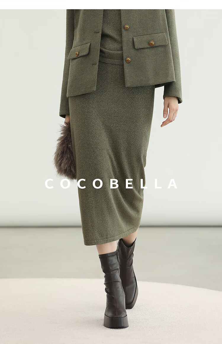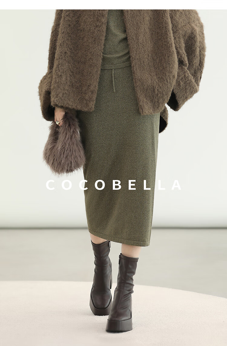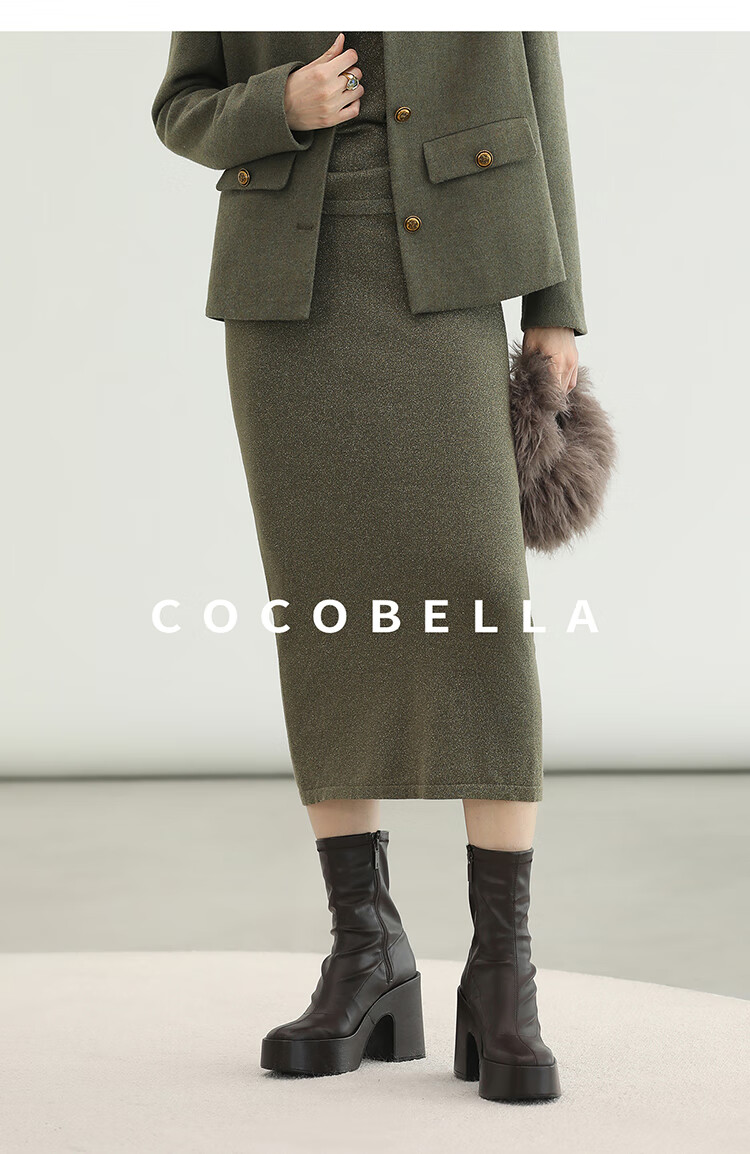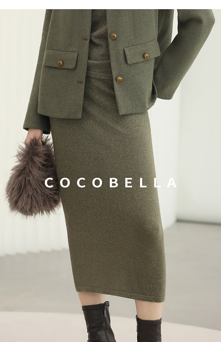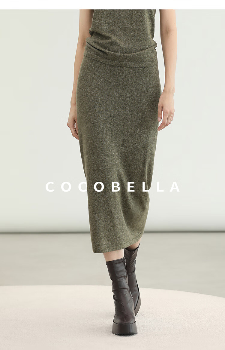COCOBELLA轻奢细闪金葱针织半身裙女秋冬新款直筒长裙MZ0056-2