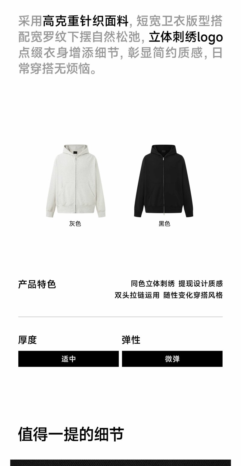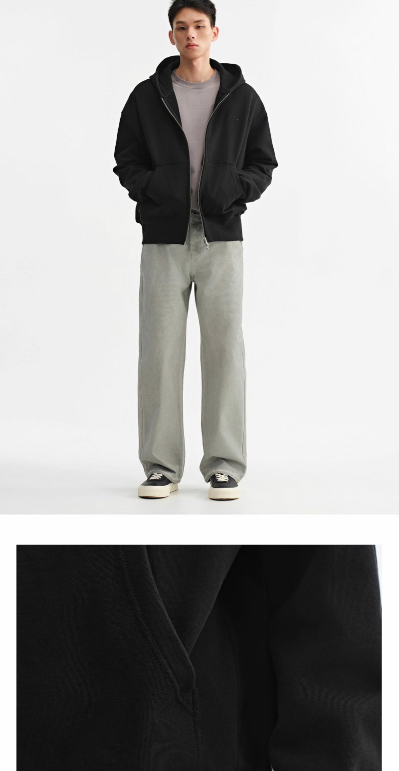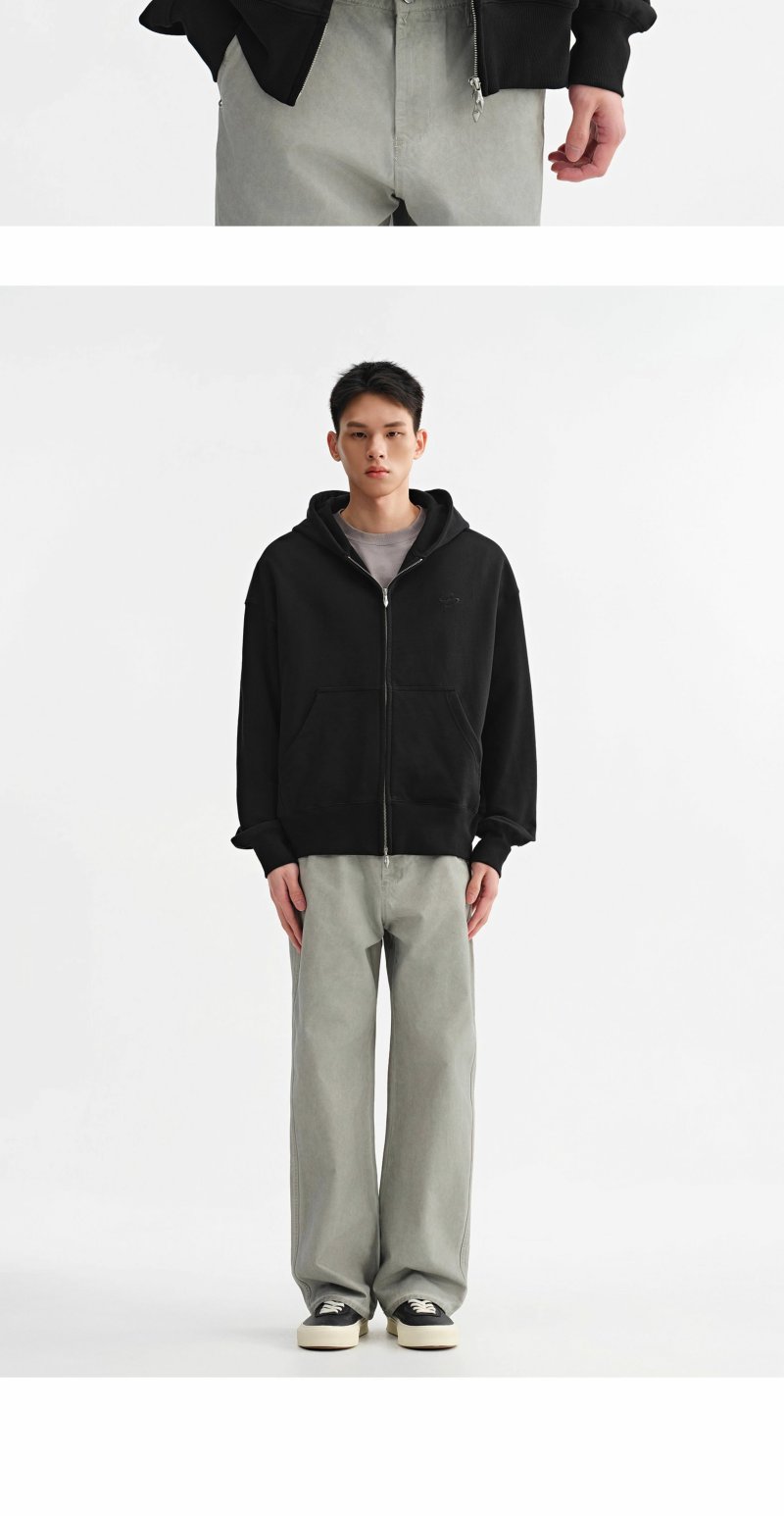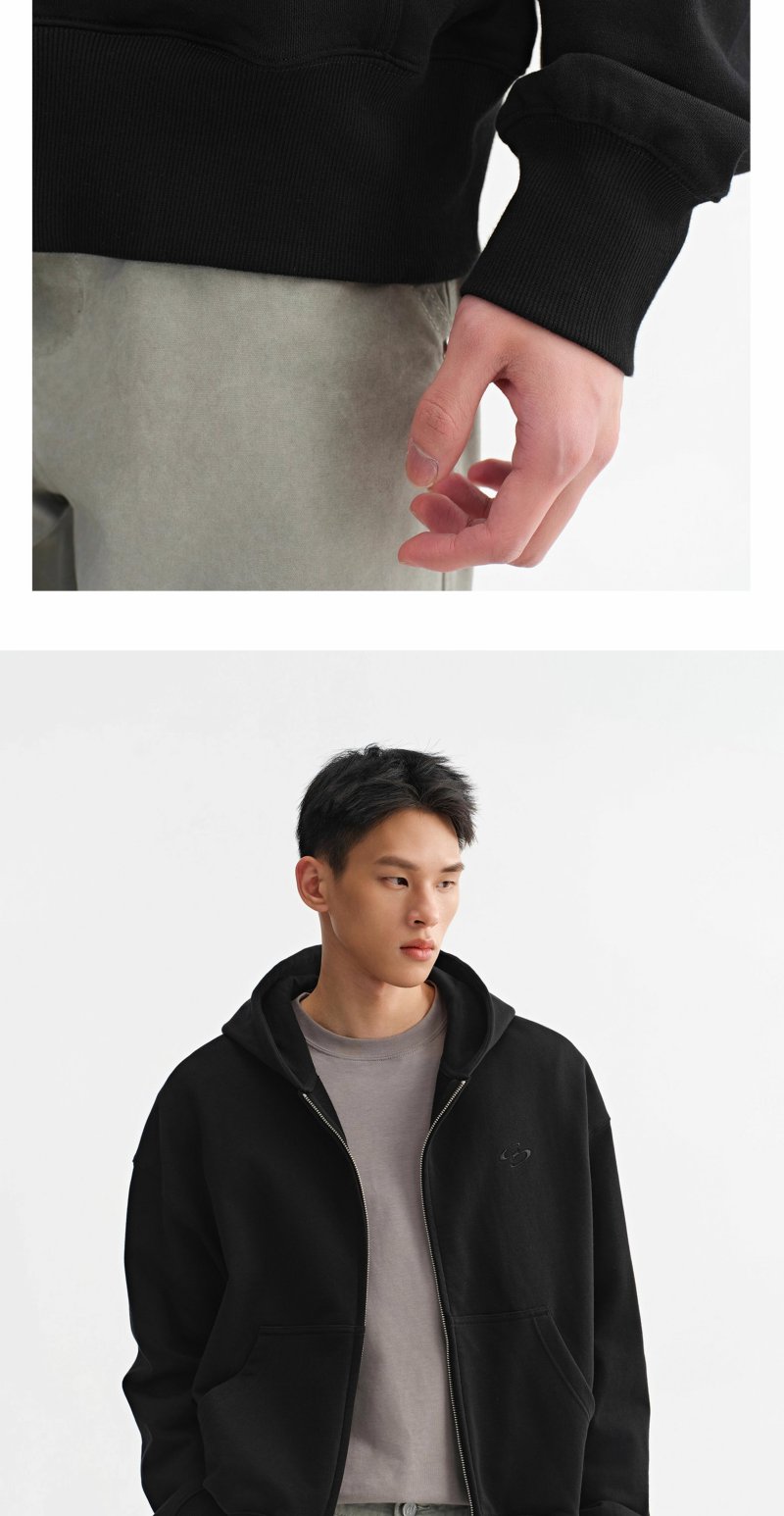 CHINISM赤尘 黑色重磅刺绣连帽开衫卫衣男秋季美式短款拉链外套