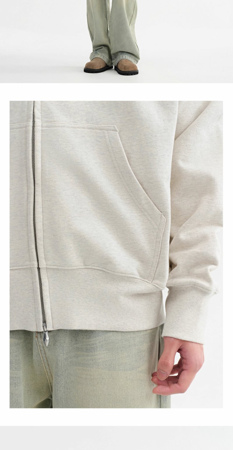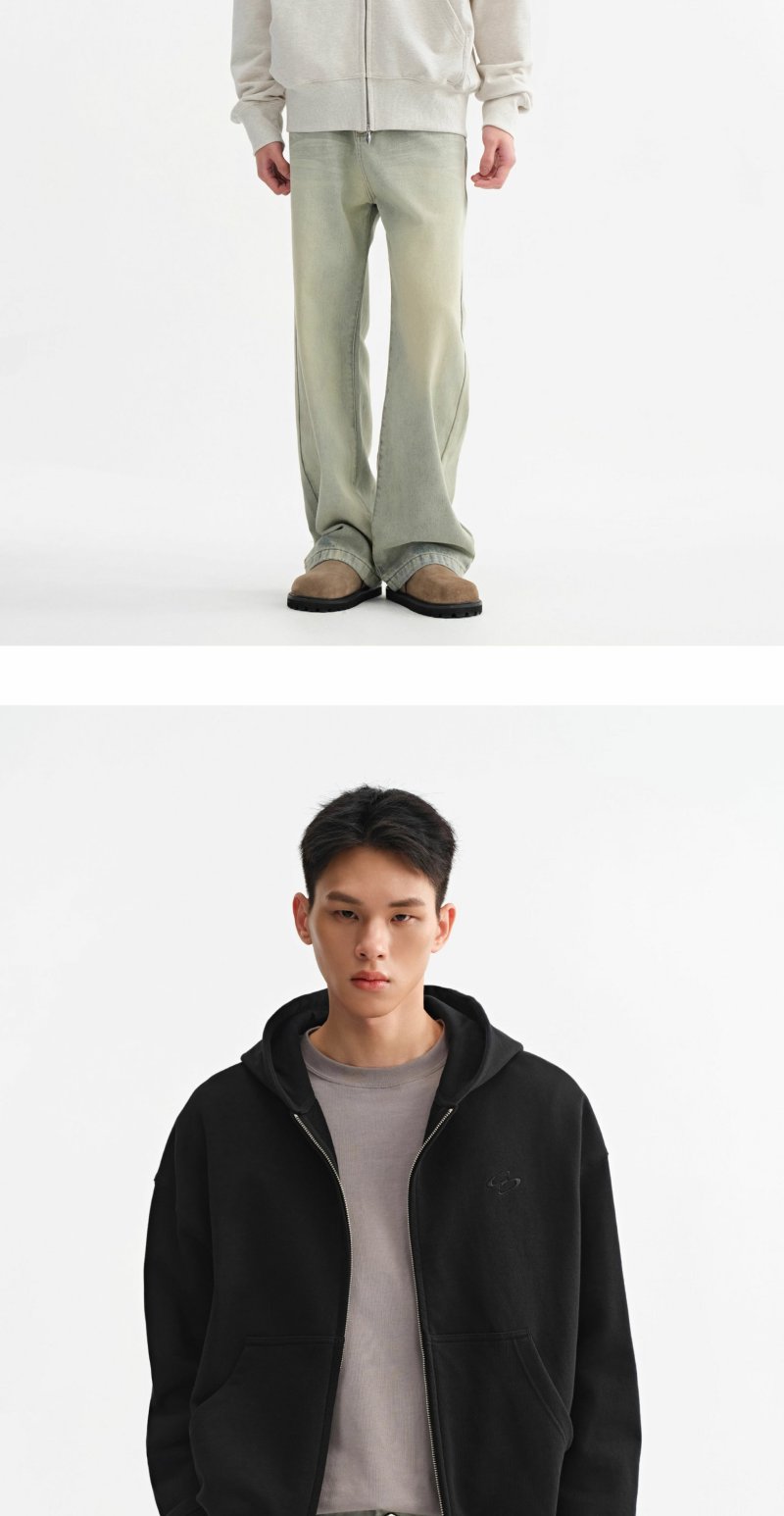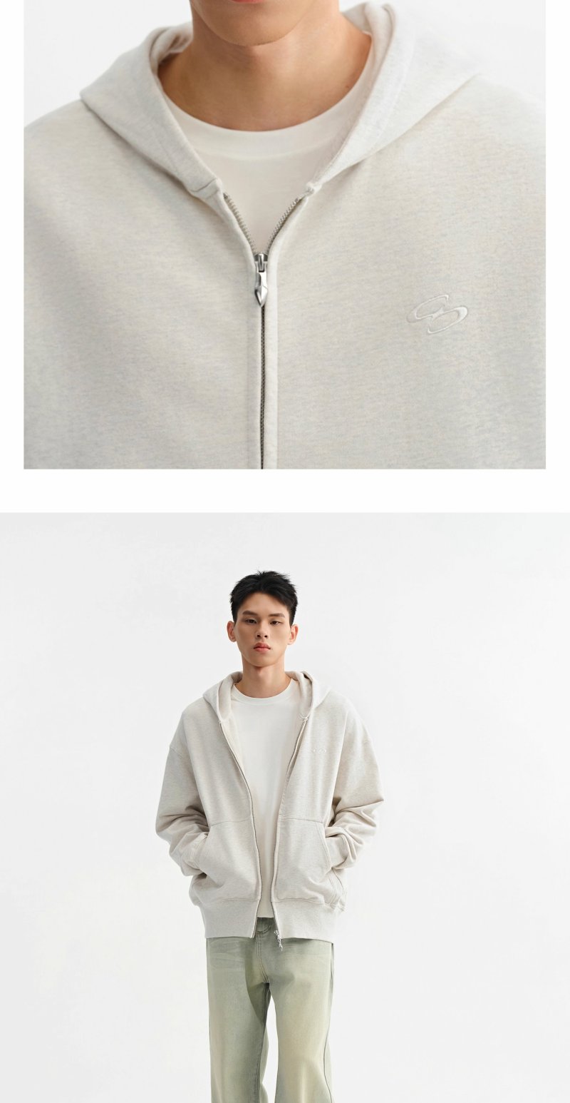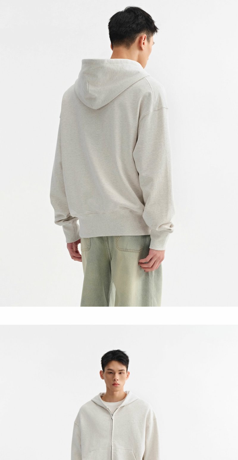 CHINISM赤尘 黑色重磅刺绣连帽开衫卫衣男秋季美式短款拉链外套