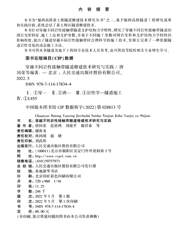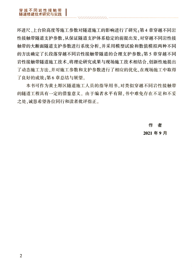 书名:穿越不同岩性接触带隧道修建技术研究与实践