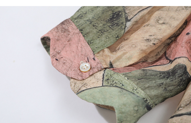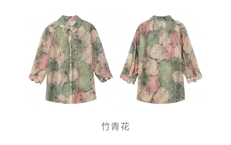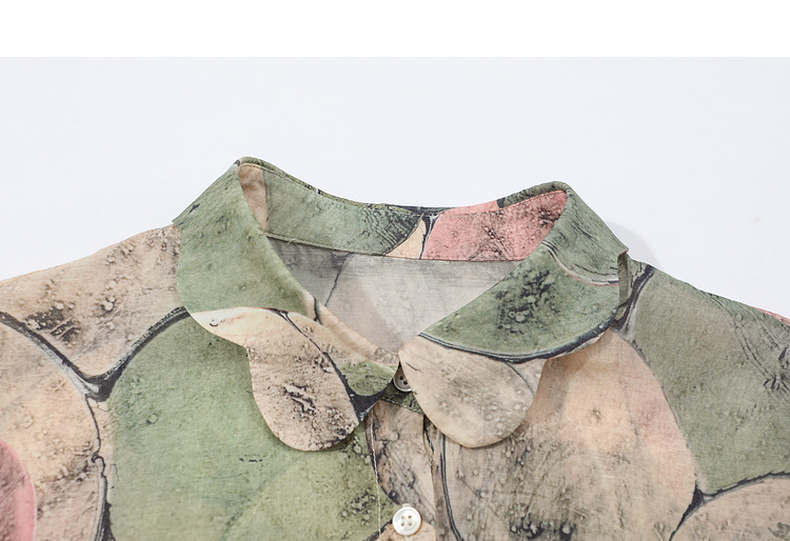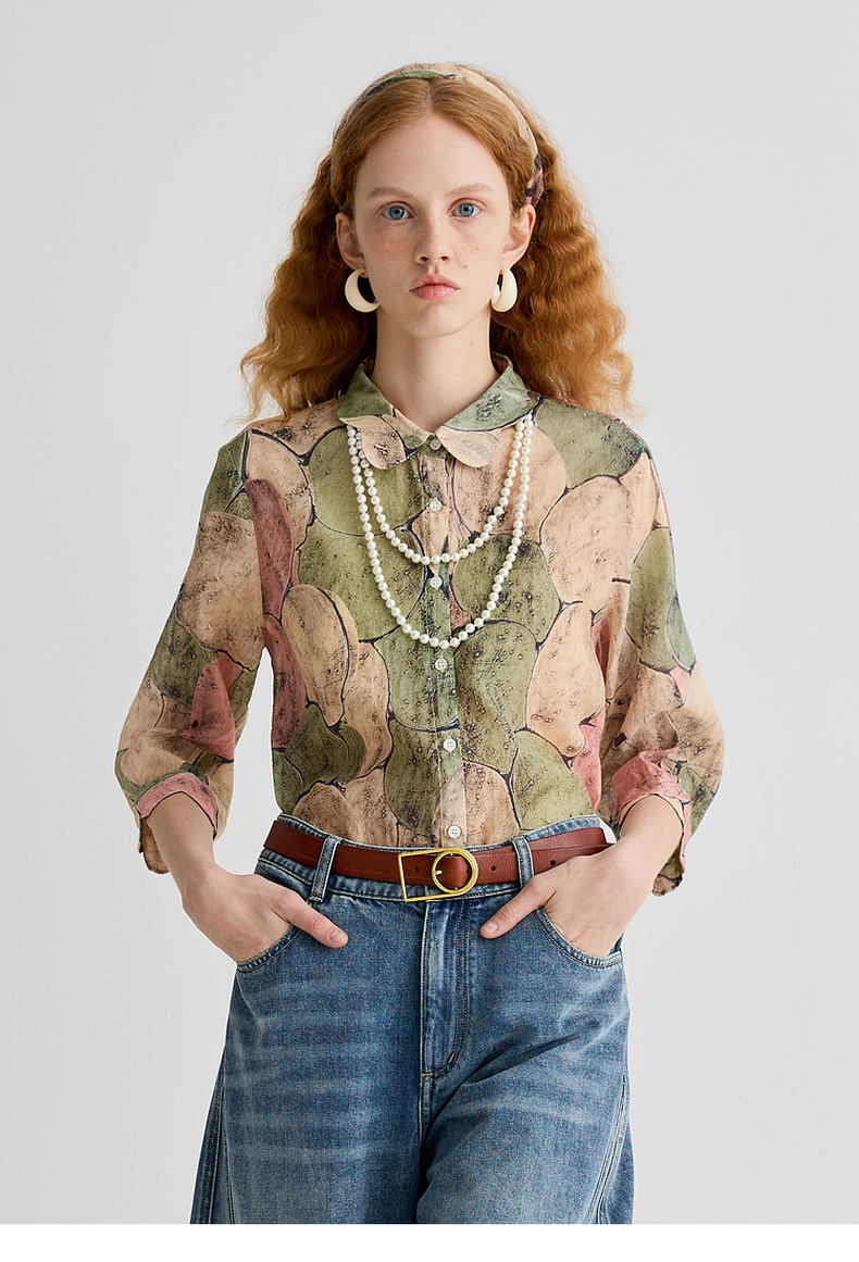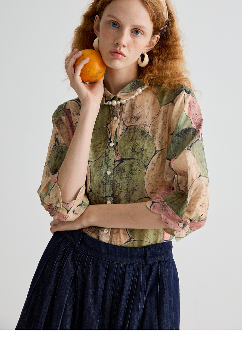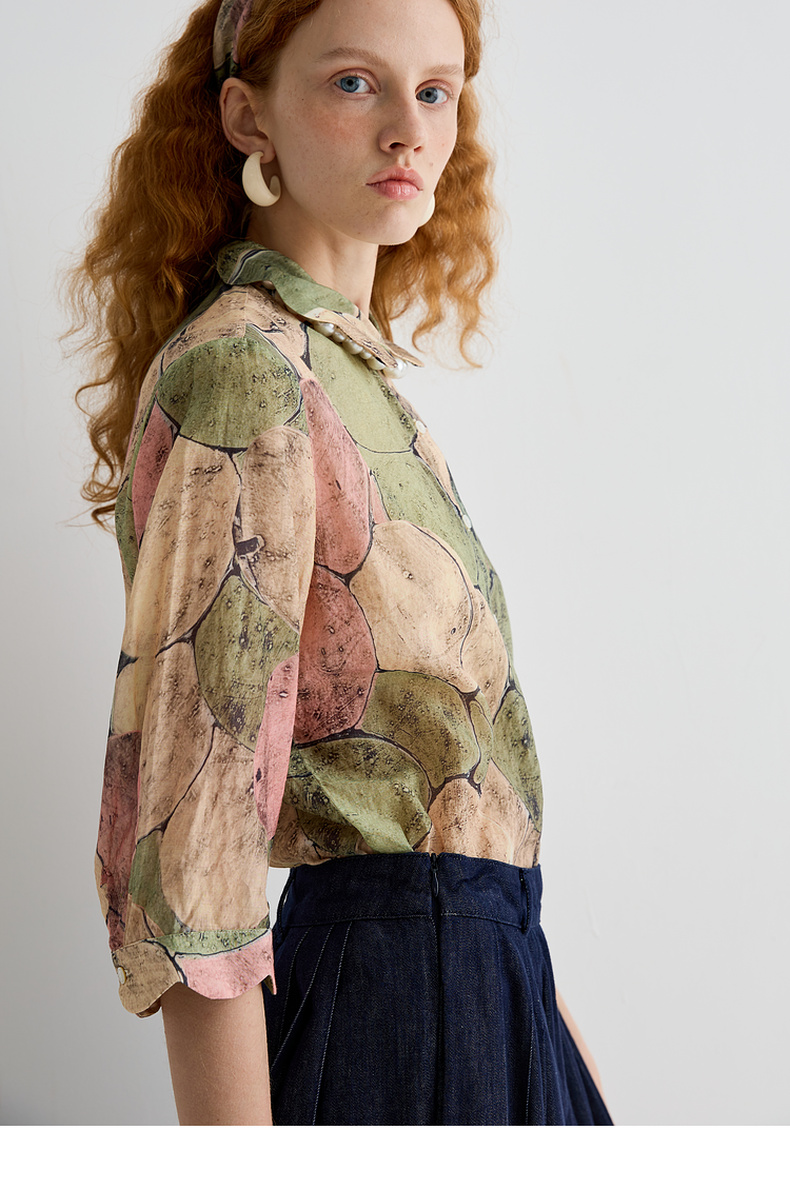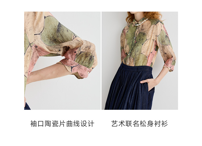 谜底衬衫分袖女2025夏款复古风通勤原创印花宽松H型衬衣252MC0622