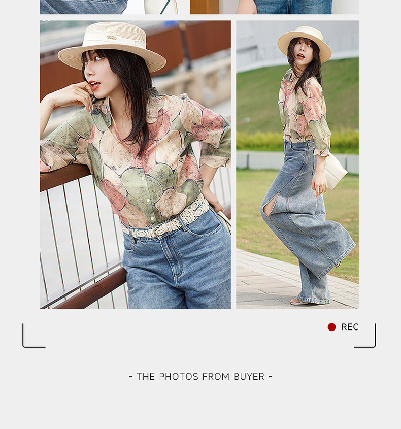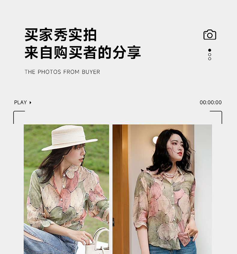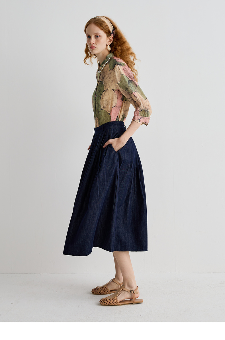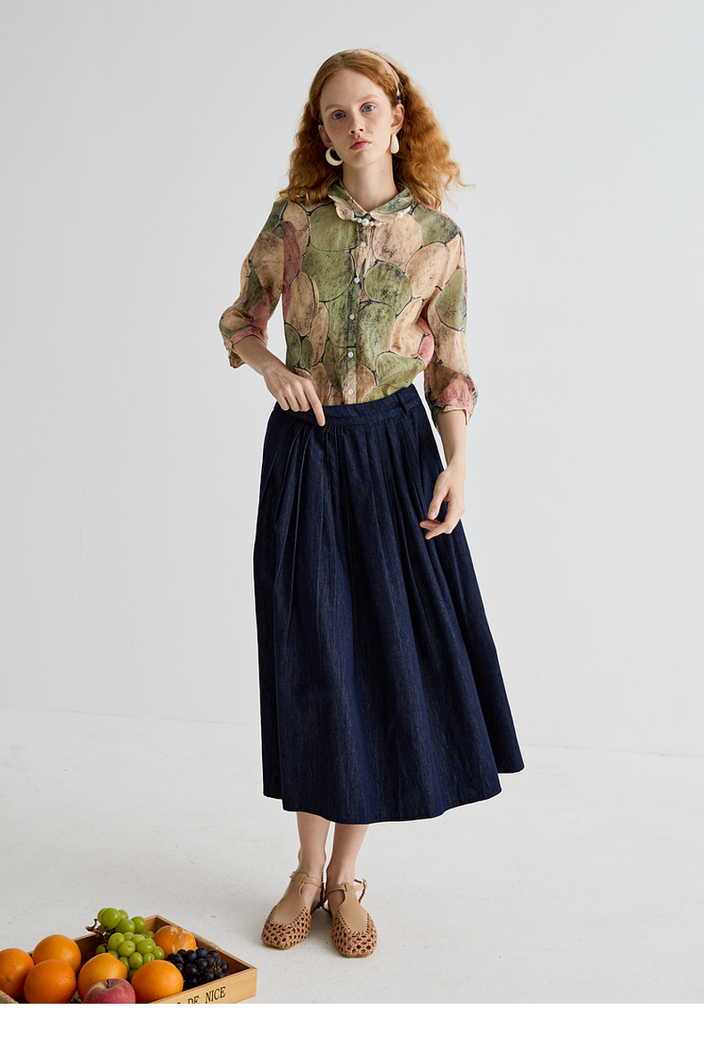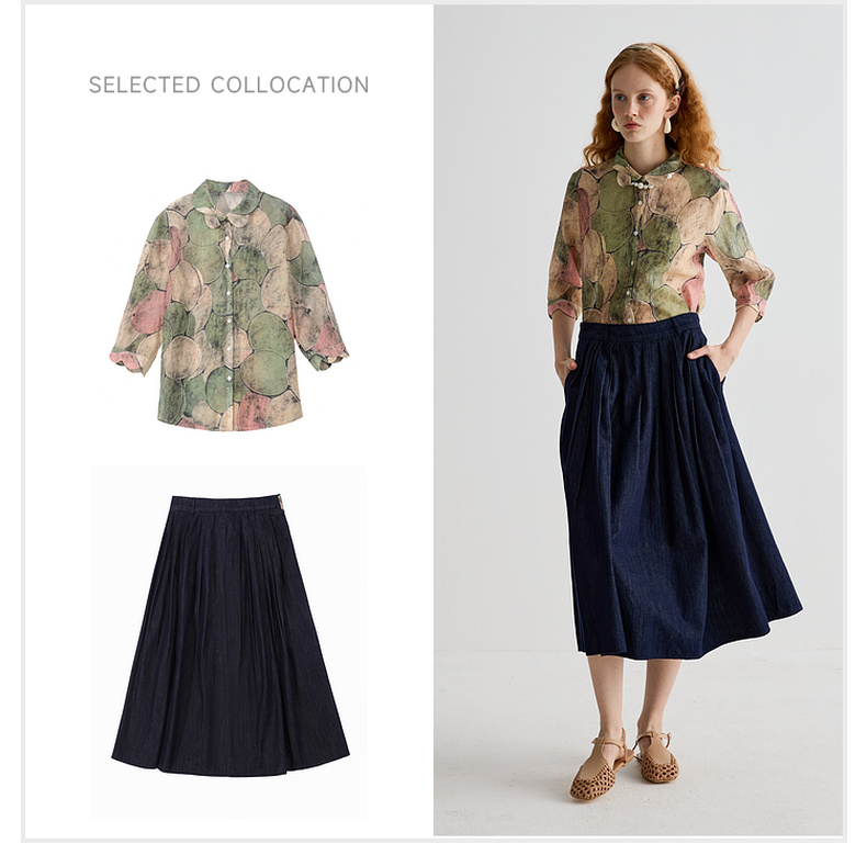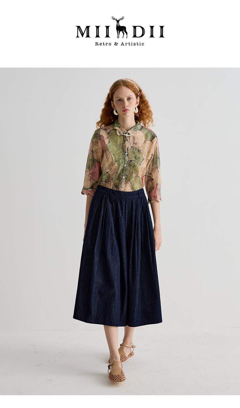 谜底衬衫分袖女2025夏款复古风通勤原创印花宽松H型衬衣252MC0622