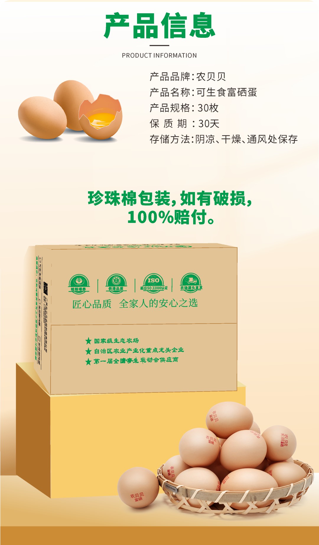 【广西帮扶】农贝贝丨可生食富硒鲜鸡蛋 30枚/箱