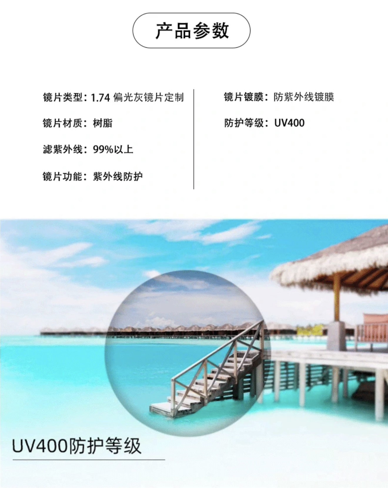 【1.74偏光灰近视定制】近视镜片定制(含镜框选配)