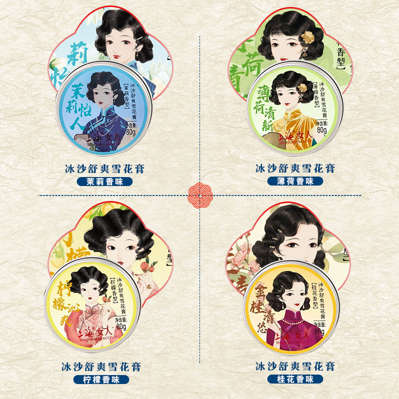 上海女人冰沙舒爽雪花膏伴手礼盒80g*4