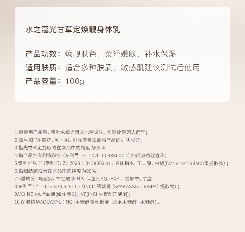 【产品名称】水之蔻光甘草定焕靓身体乳100g