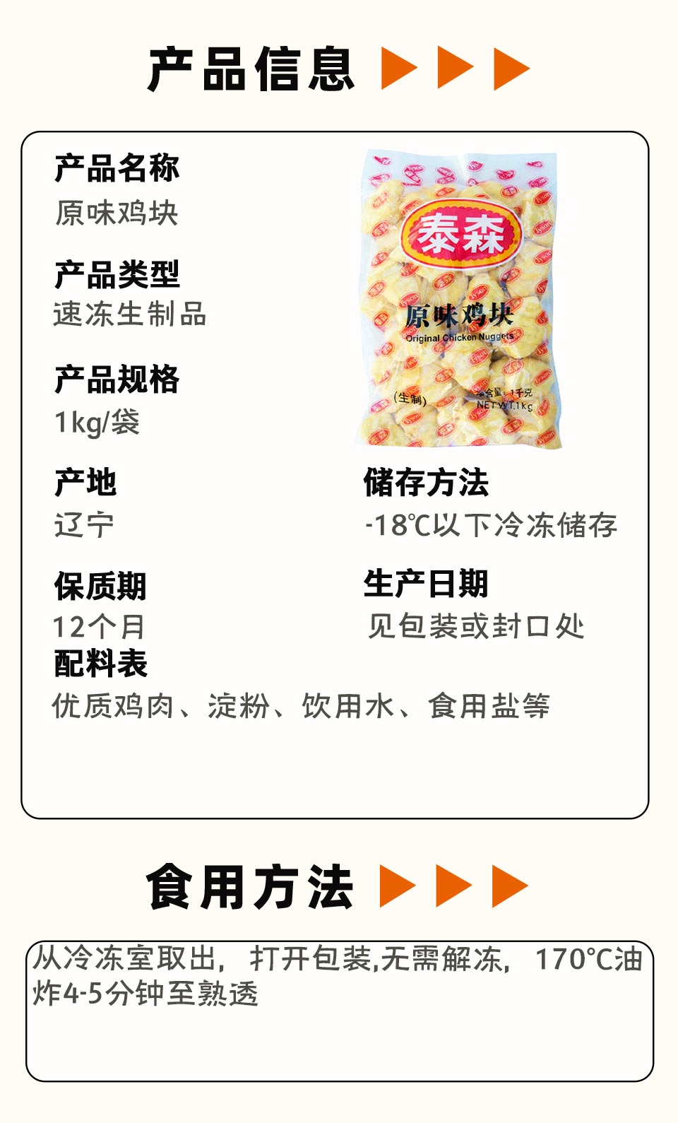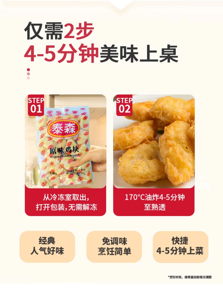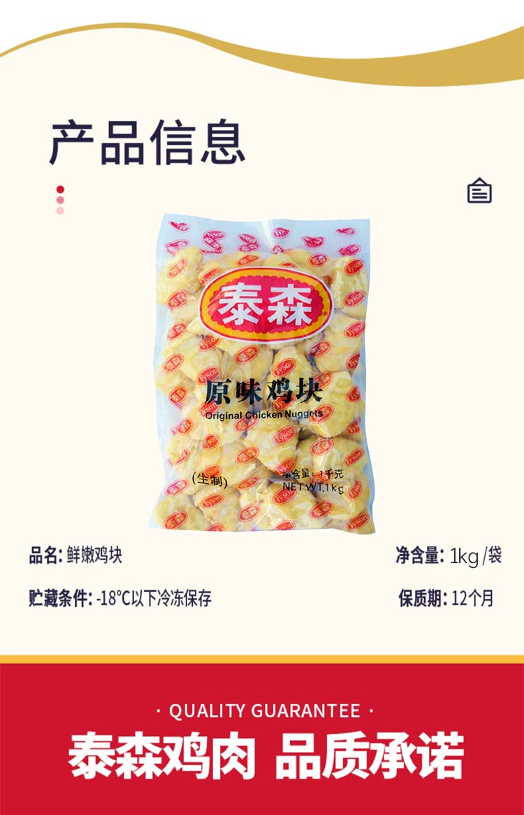 25H泰森原味鸡块1000g/袋(25g/个)15袋/件