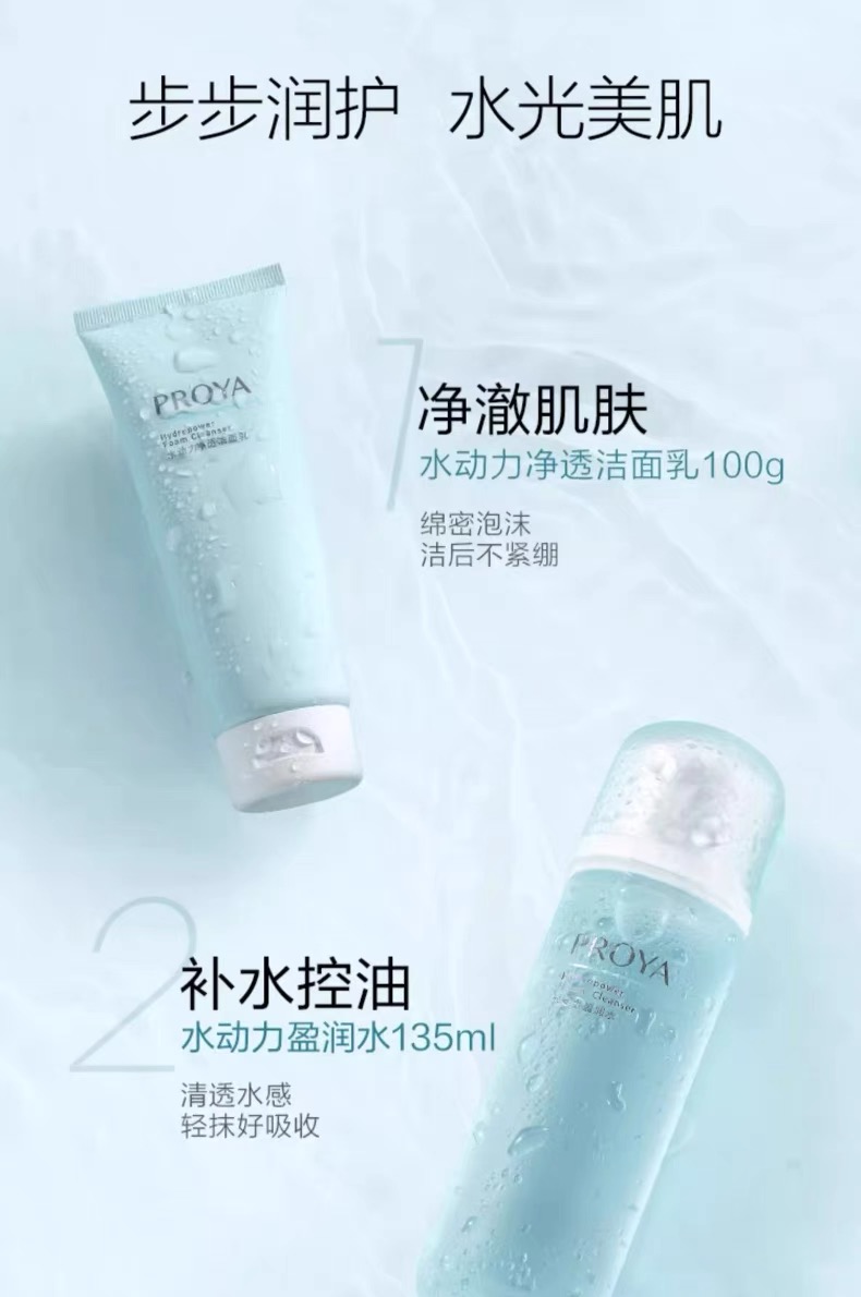 珀莱雅 水动力清爽控油补水保湿洁面水乳套盒 #洁面100g #盈润水135lml #盈润乳100ml