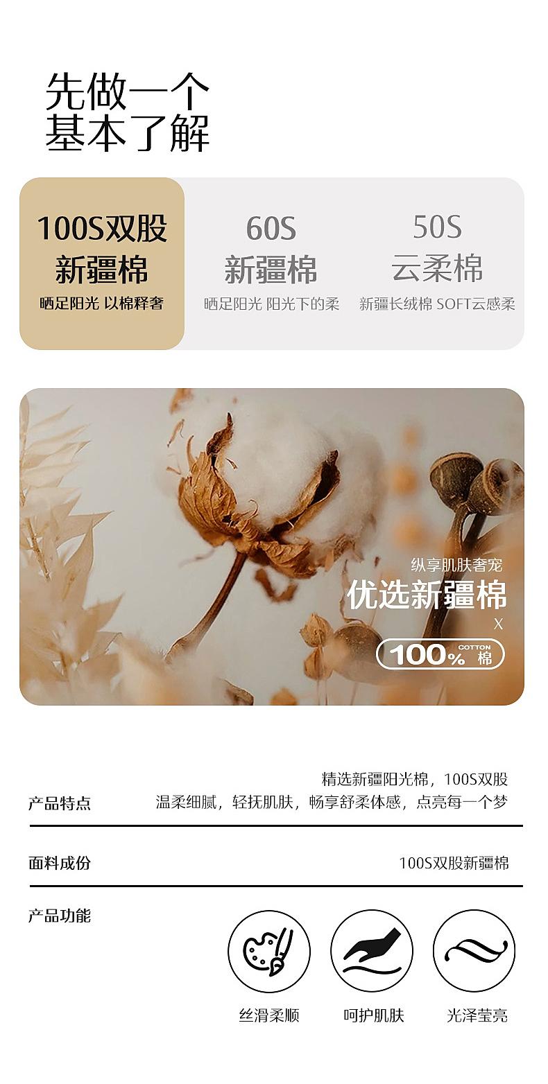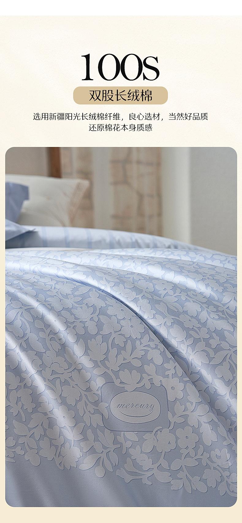 水星家纺四件套100支新疆长绒棉轻奢丝滑床品简约