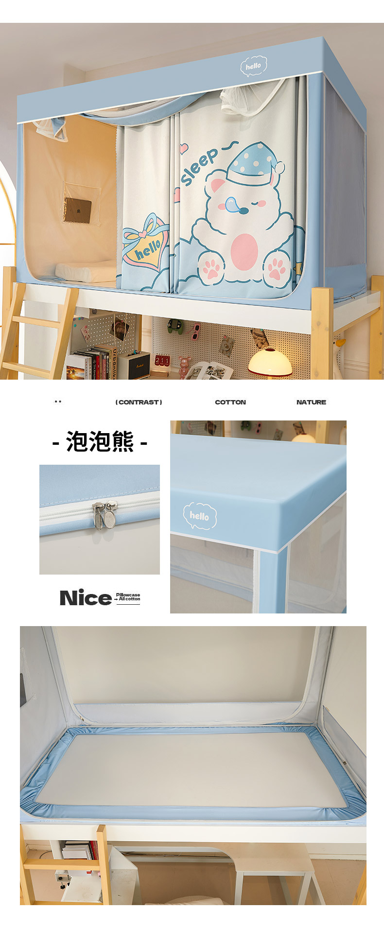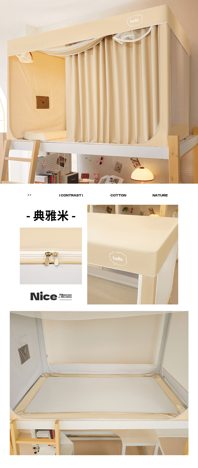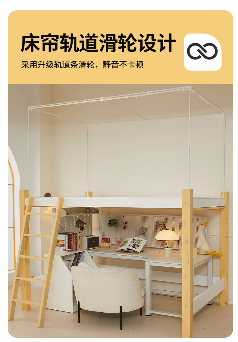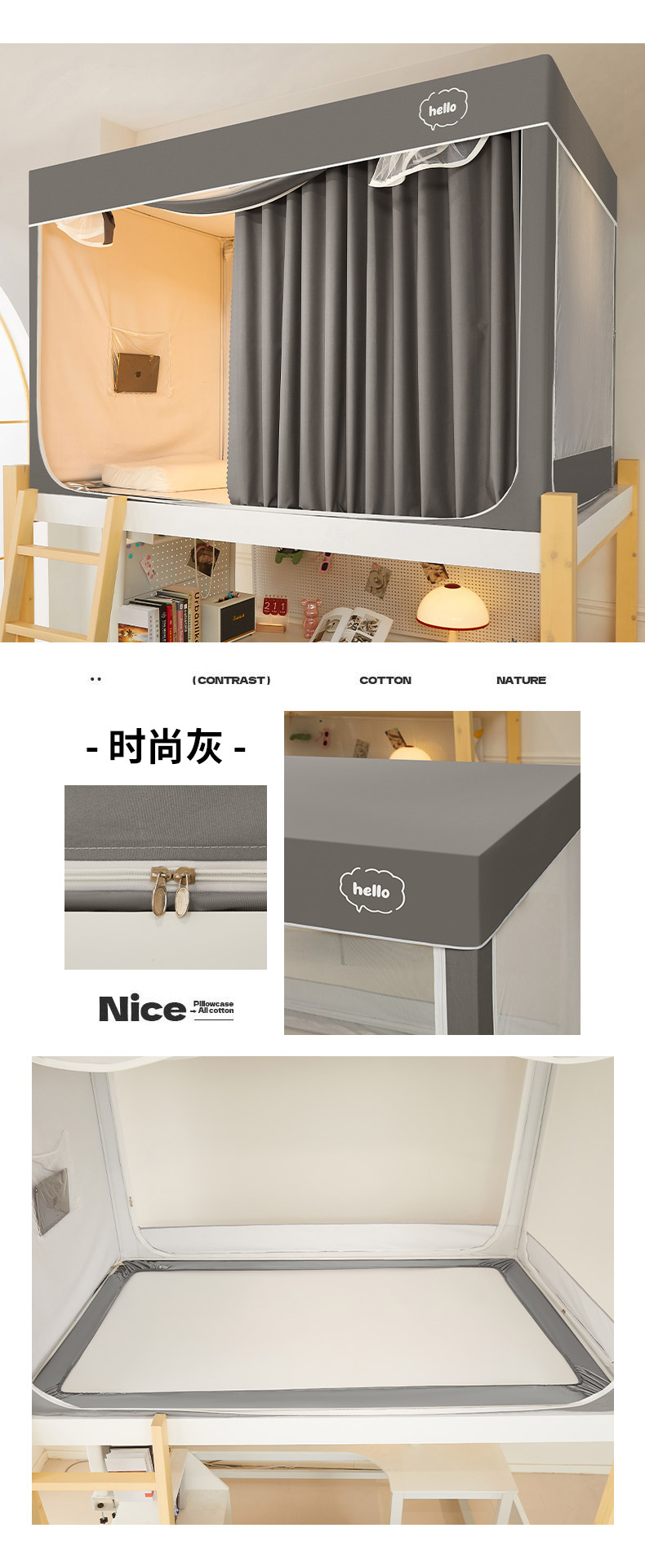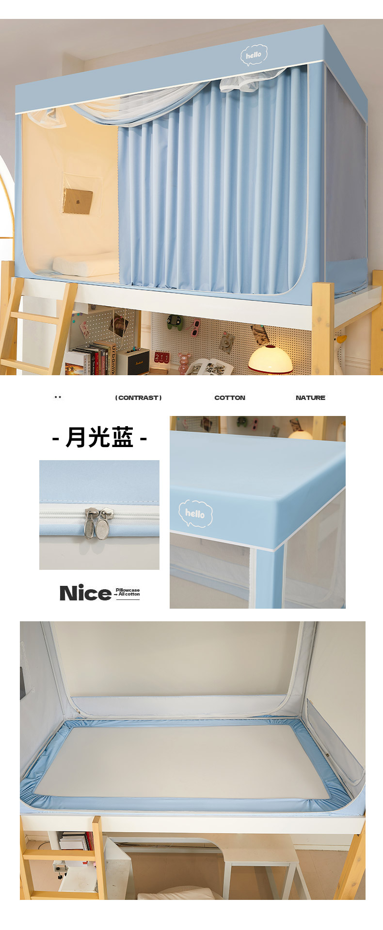 自然醒强遮光非涂层静电植绒环保透气床帘加密纱学生蚊帐一体式寝室上下铺单人加导轨HH