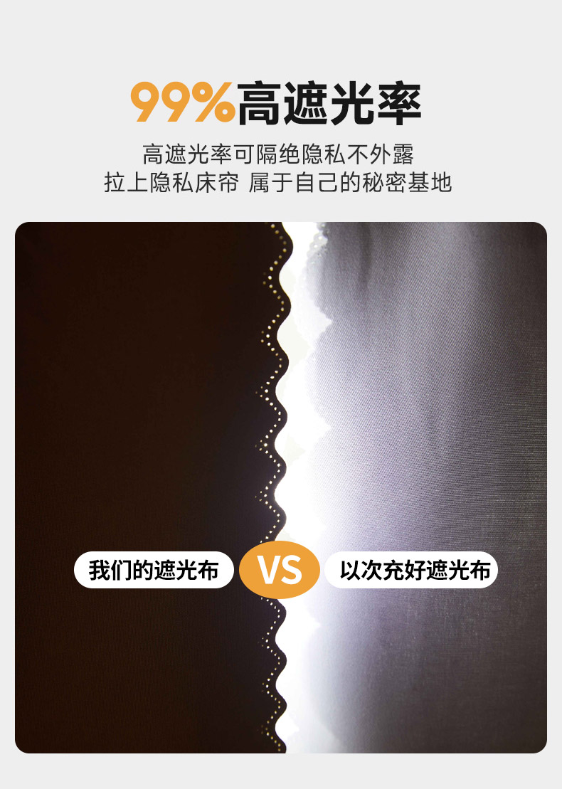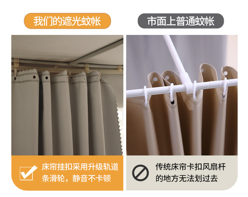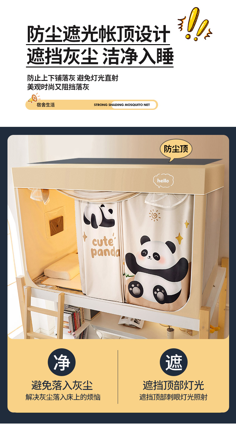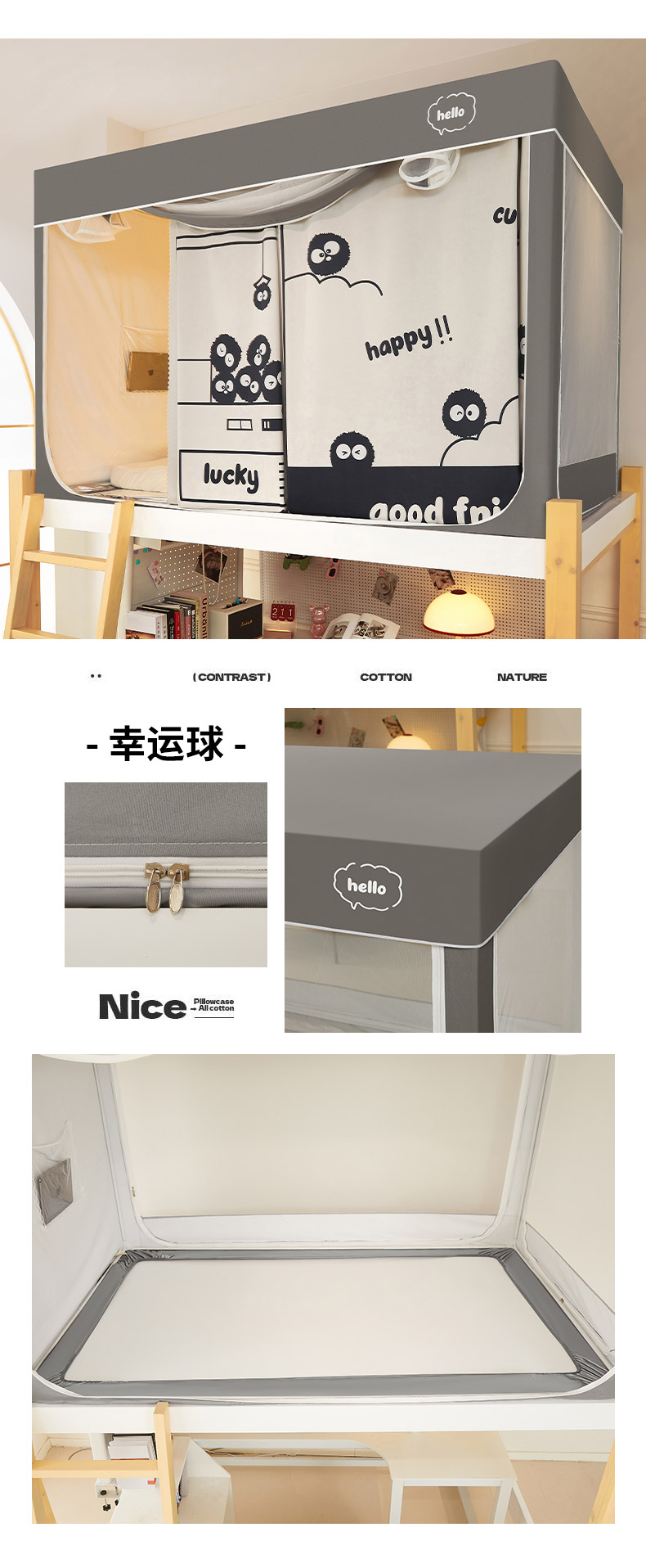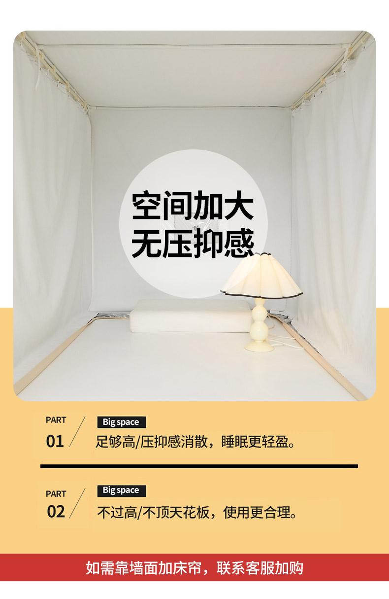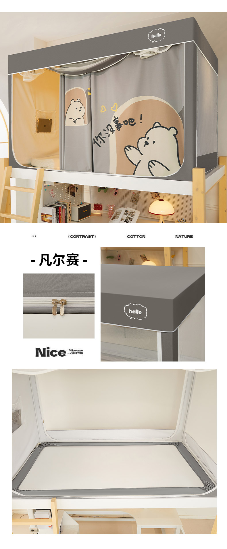 自然醒强遮光非涂层静电植绒环保透气床帘加密纱学生蚊帐一体式寝室上下铺单人加导轨HH
