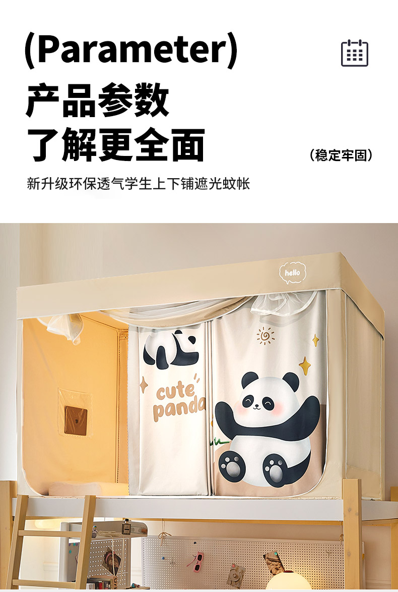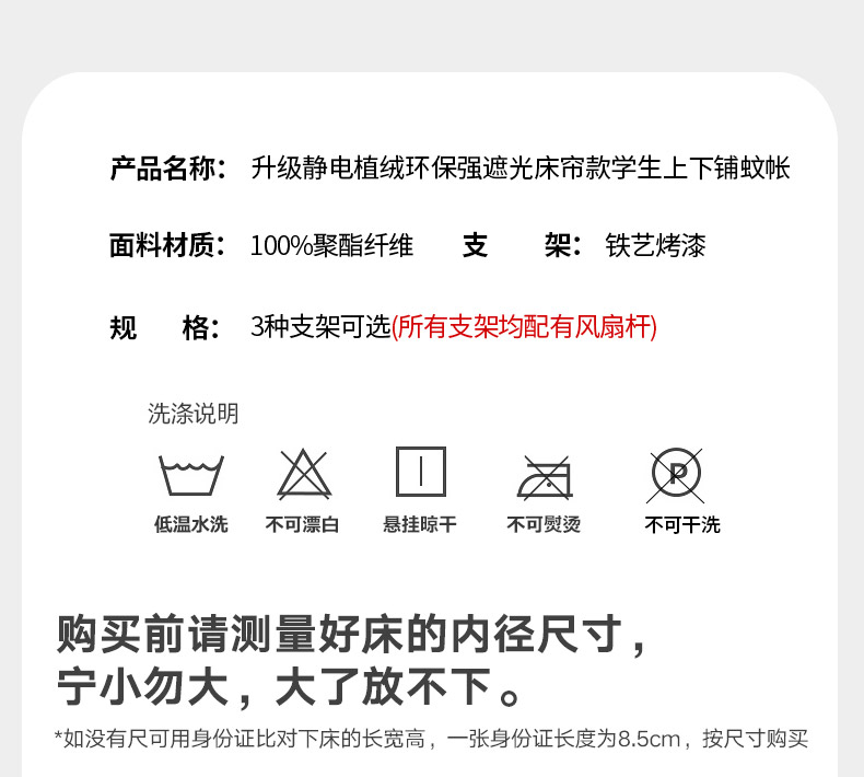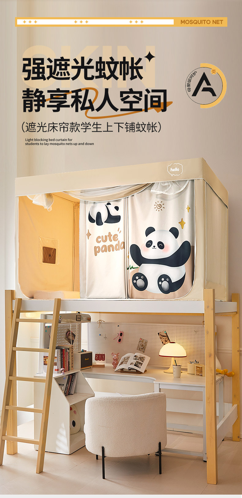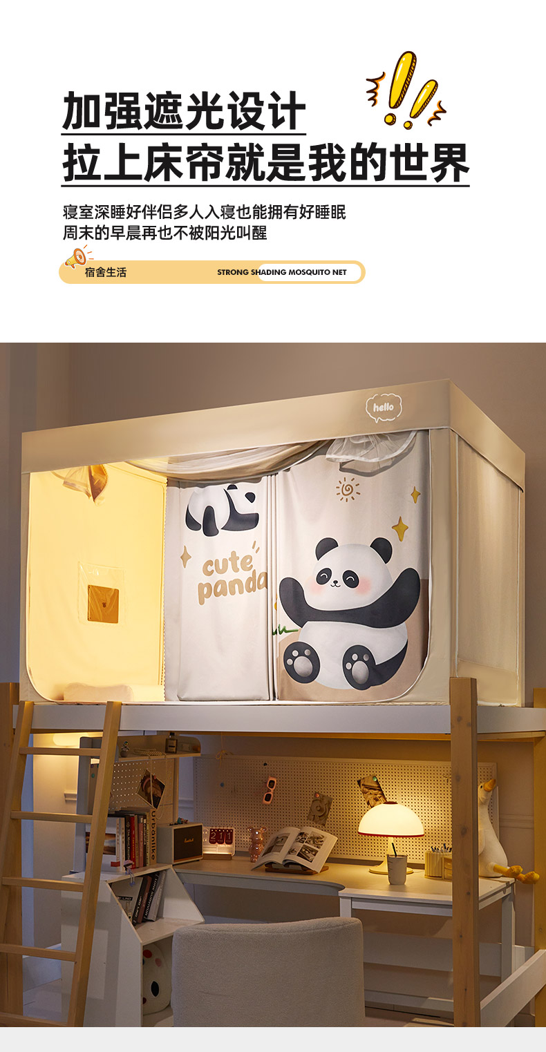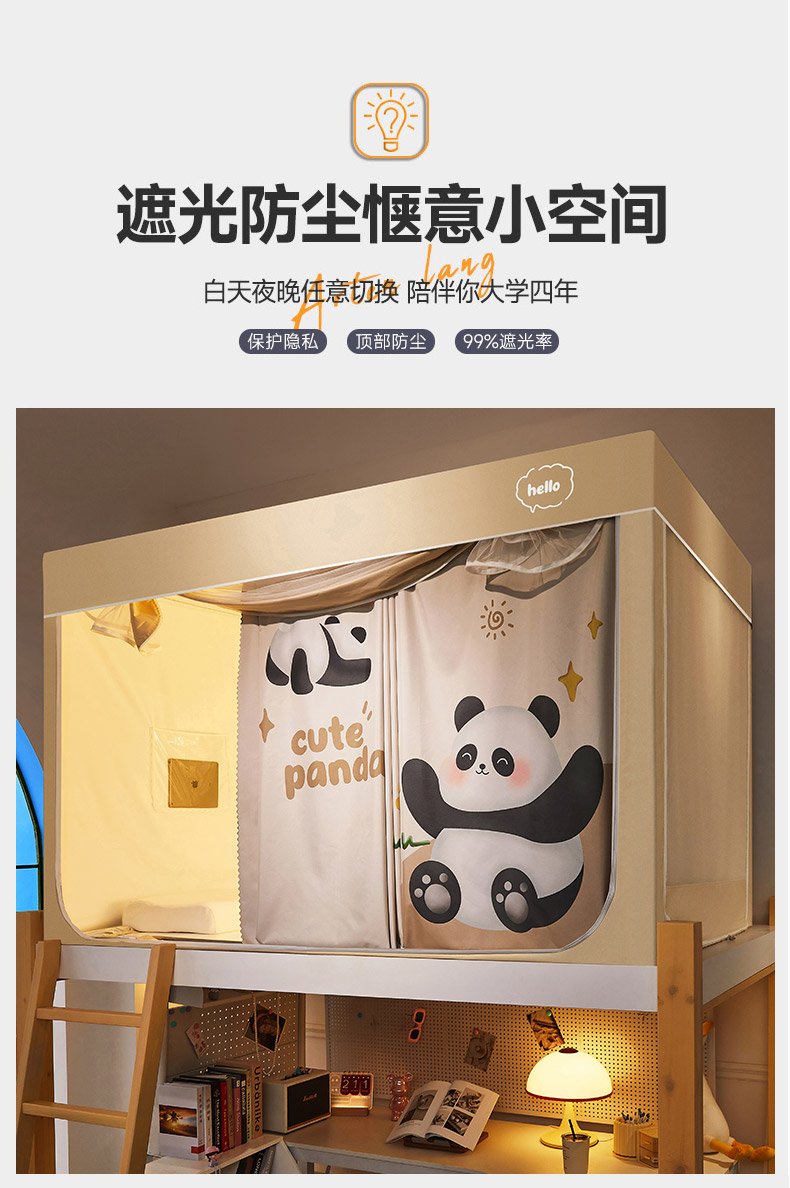 自然醒强遮光非涂层静电植绒环保透气床帘加密纱学生蚊帐一体式寝室上下铺单人加导轨HH
