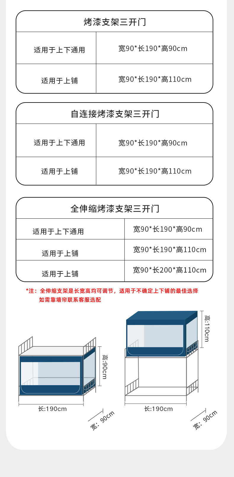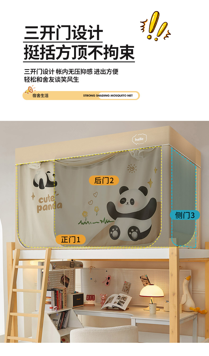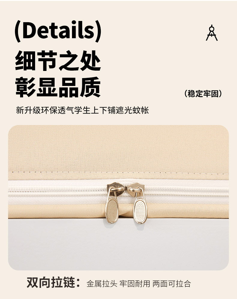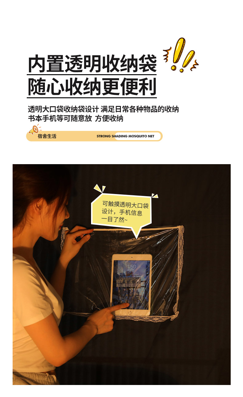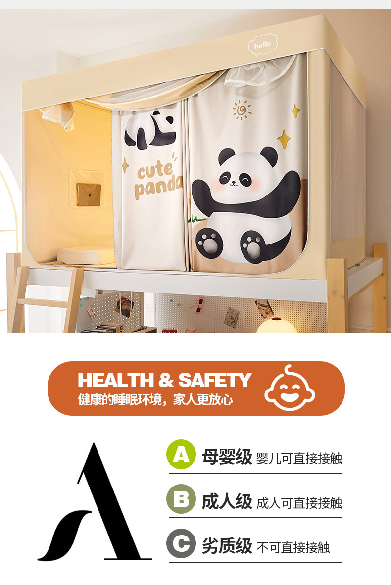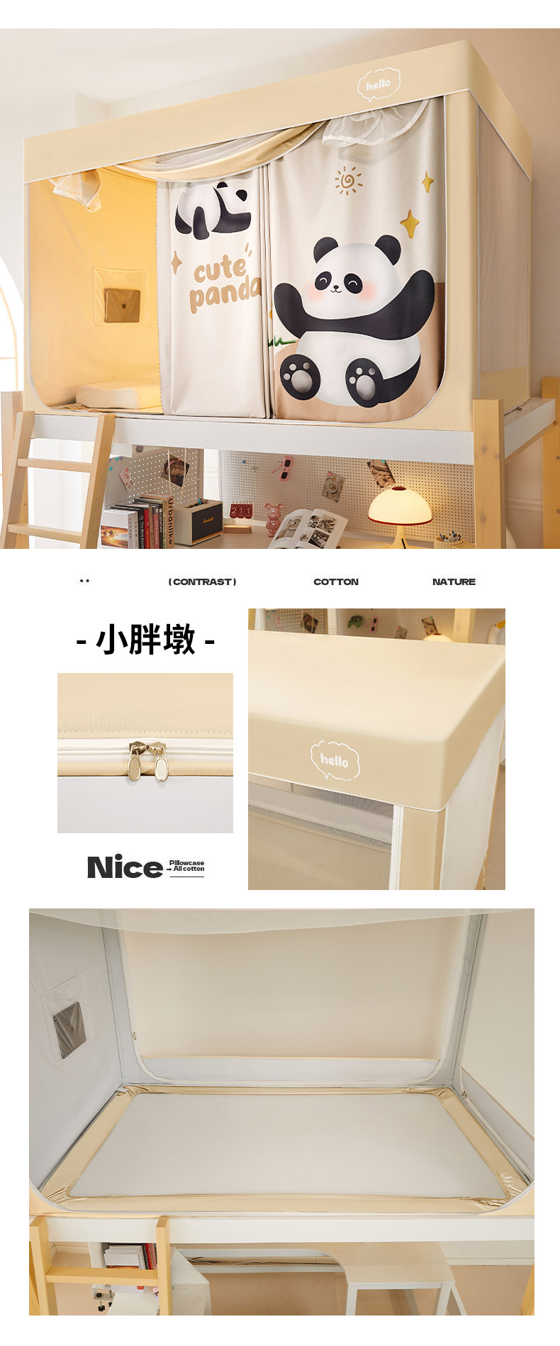 自然醒强遮光非涂层静电植绒环保透气床帘加密纱学生蚊帐一体式寝室上下铺单人加导轨HH