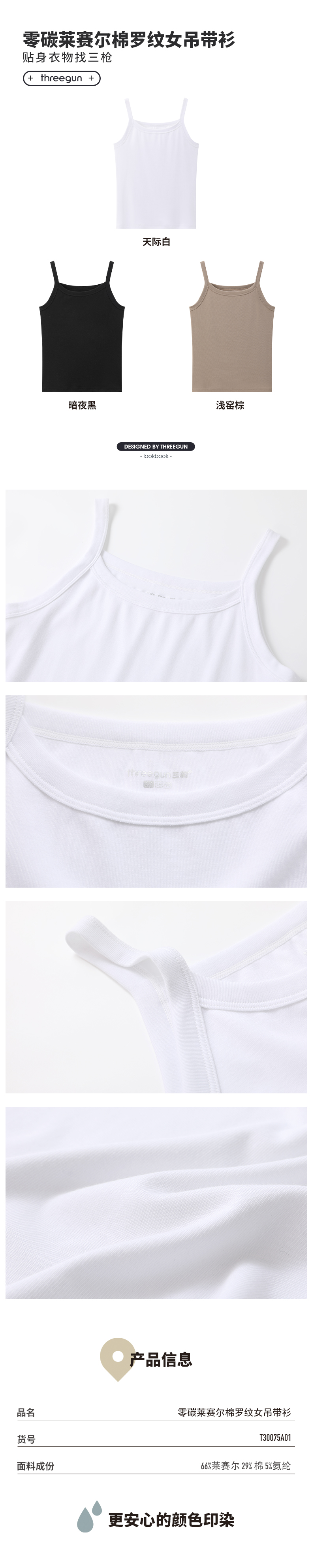 Threegun三枪 零碳莱赛尔棉罗纹女吊带衫-T30075A01