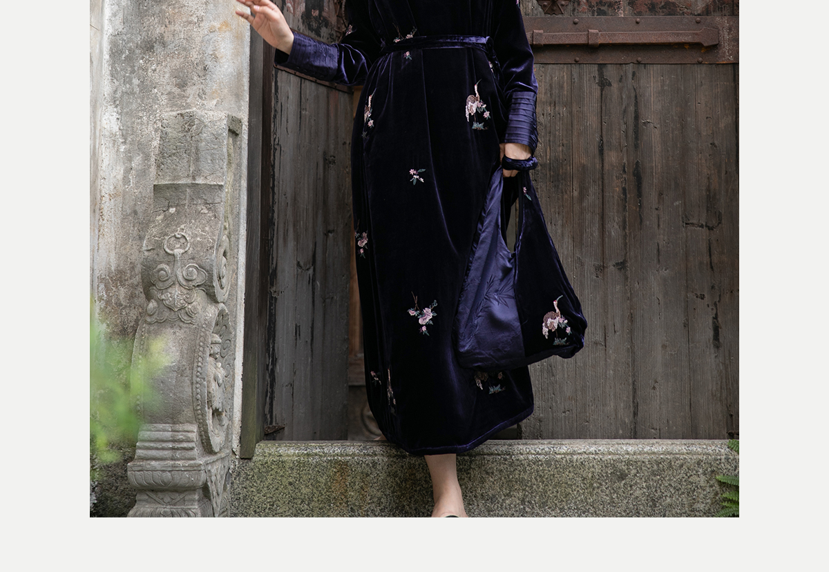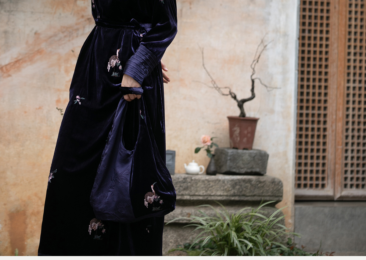 牧衣游原创 匹绣丝绒拼接单肩包百搭文艺 花盏【不支持会员折】