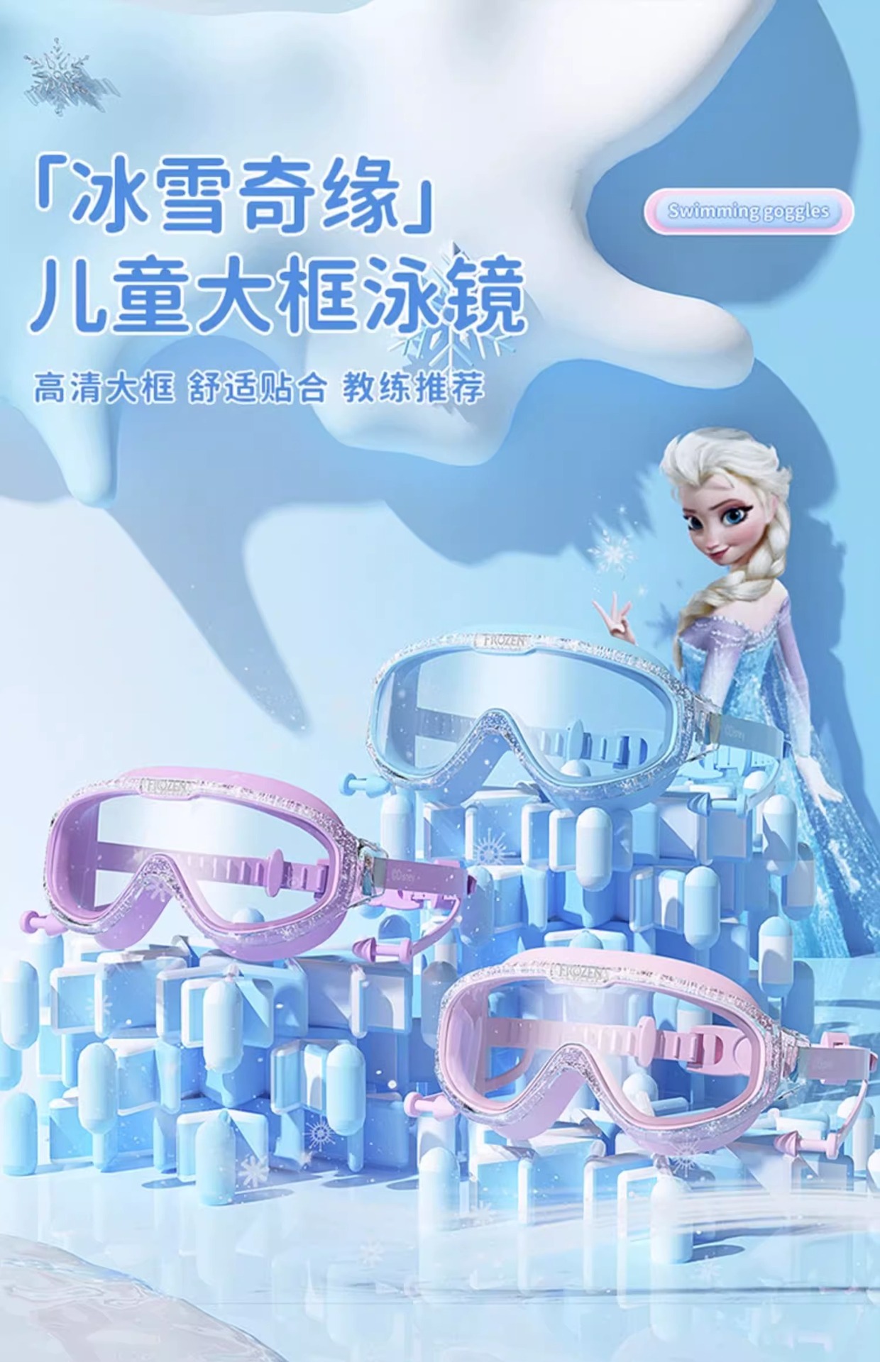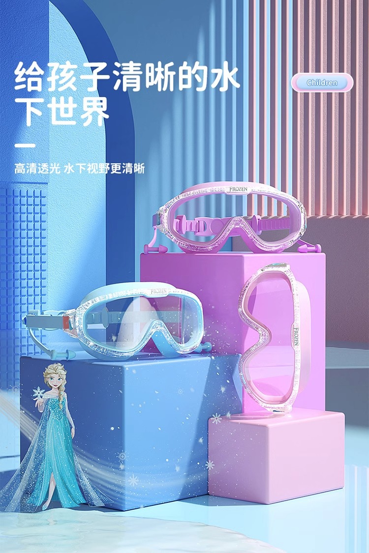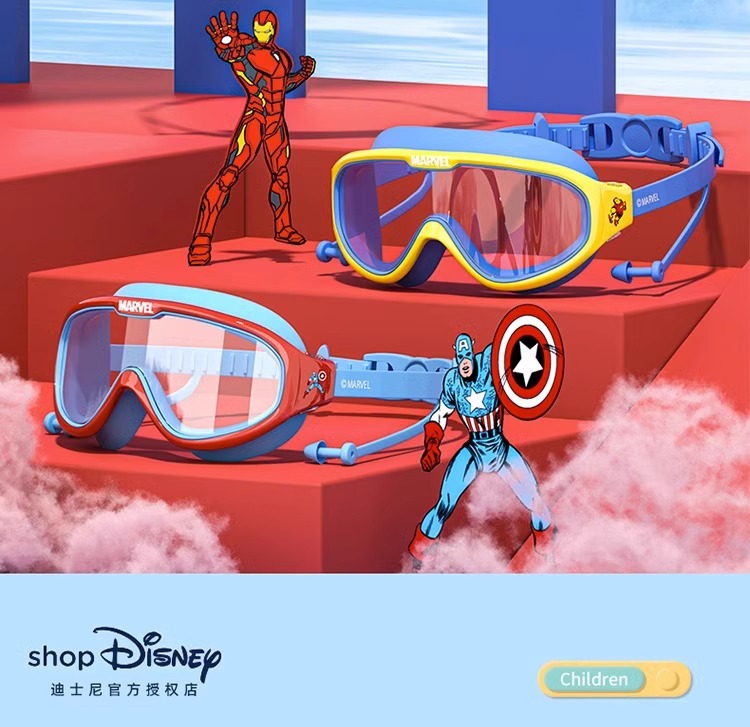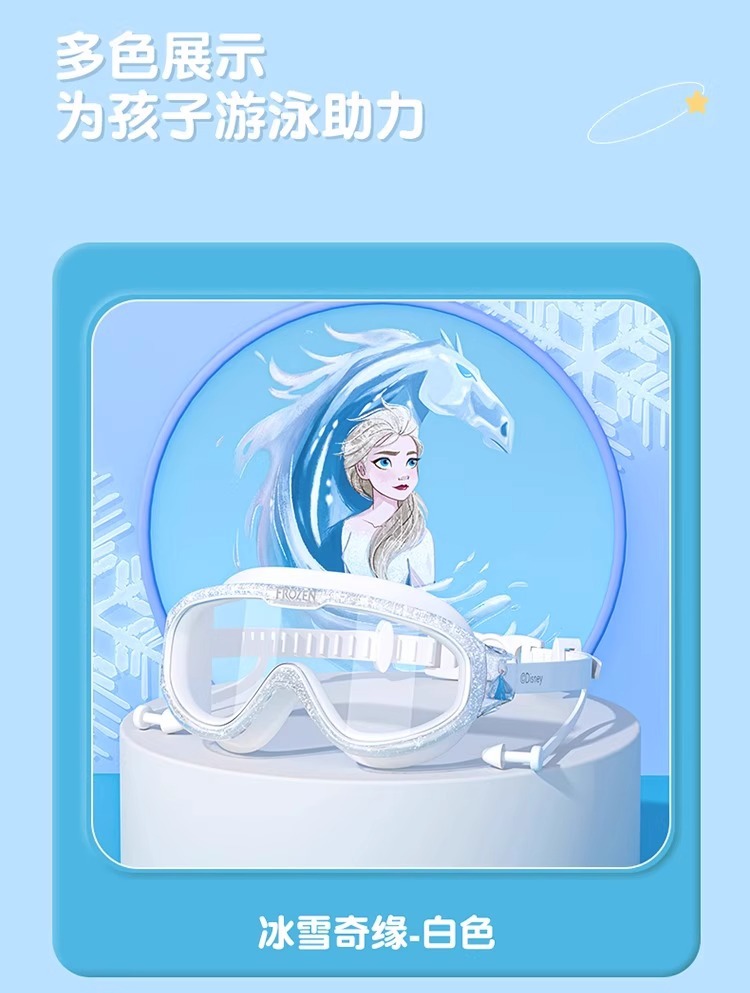 迪士尼儿童泳镜泳帽男童女童大框游泳眼防水防雾高清专业潜水套装