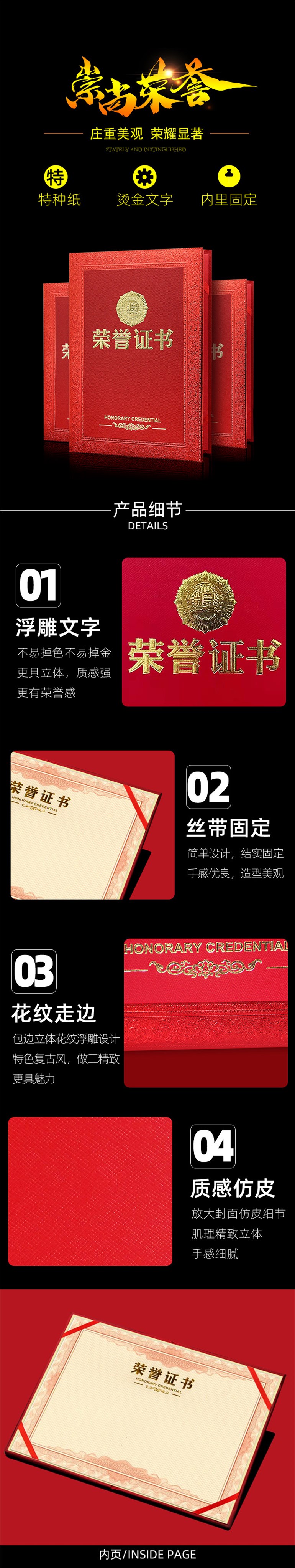 启恒荣誉证书 12K浮雕烫金奖状 配A4内页 1本 优秀员奖励表彰获奖荣誉证书