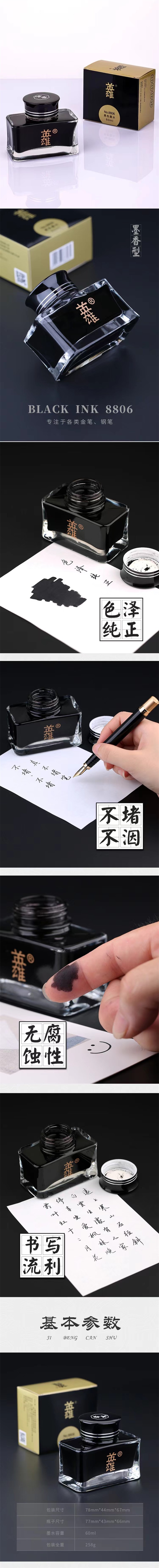 HORO英雄8806钢笔墨水黑色60ml 1瓶 精品通用高档金笔书写非碳素不堵墨香型