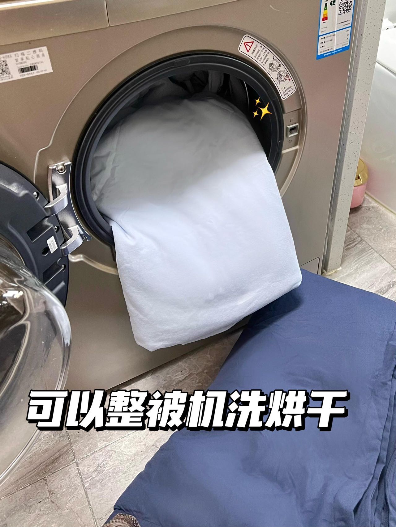 这床被子盖的时候,本来就可以免套被套,而且整床被子都可以丢到洗衣机清洗和烘干,洗个40分钟就能焕然一新。
