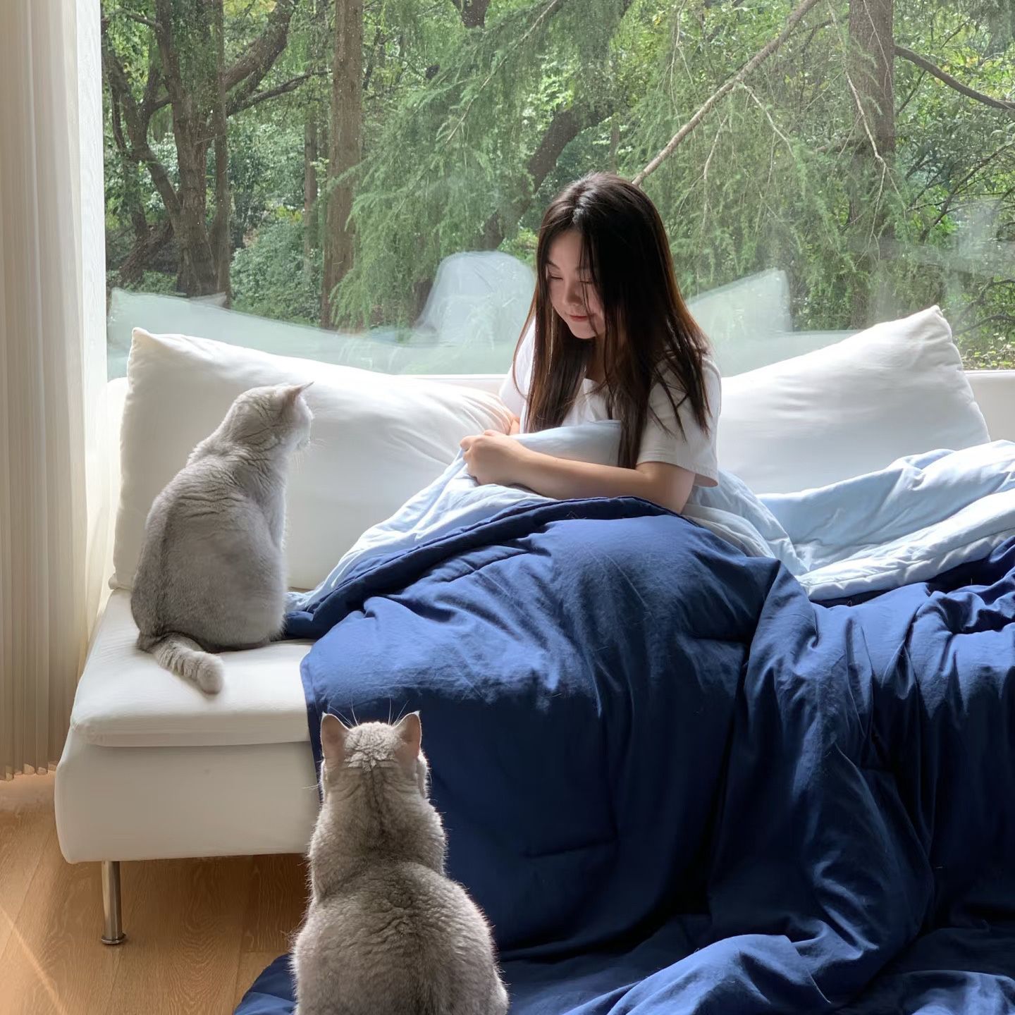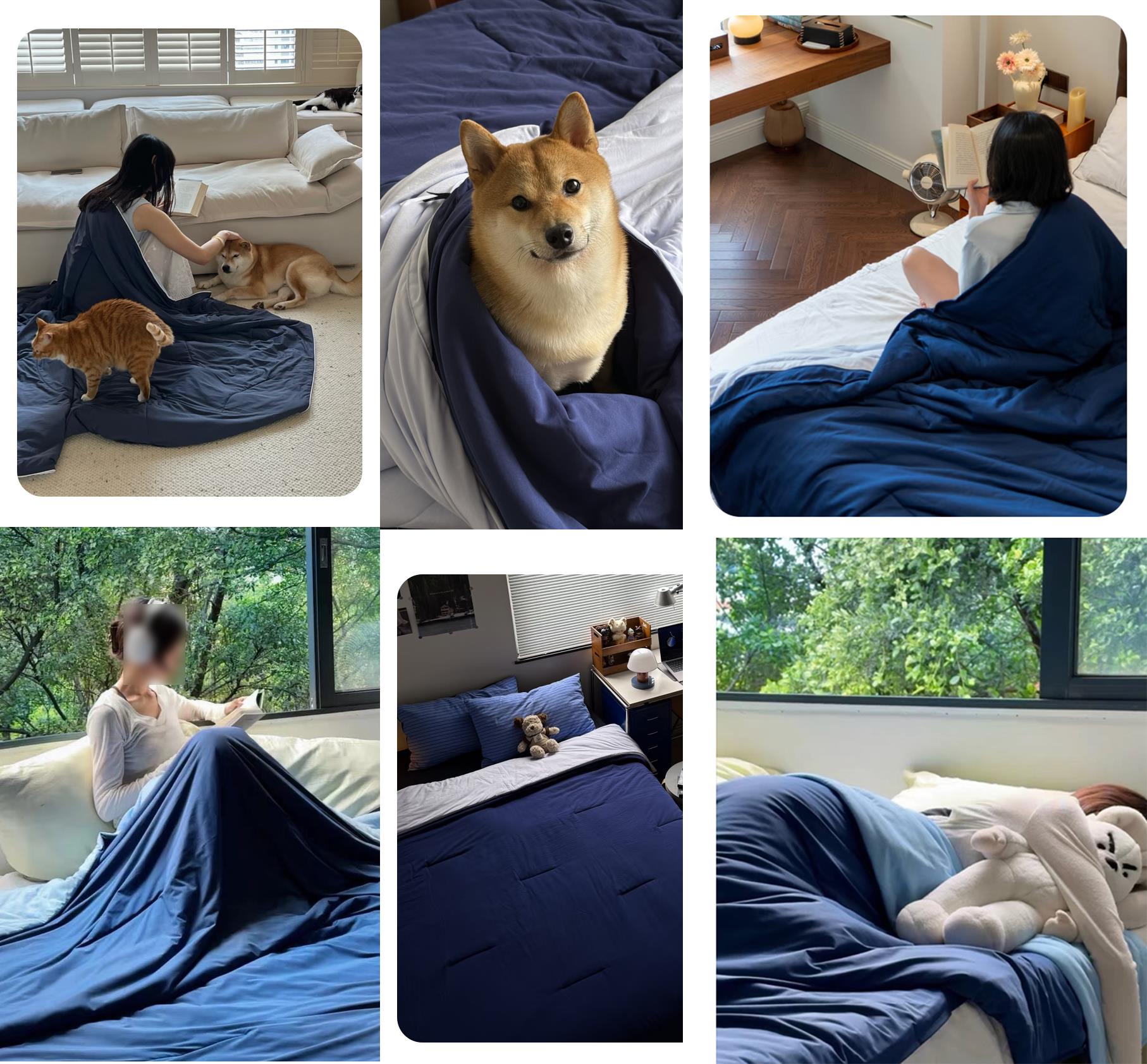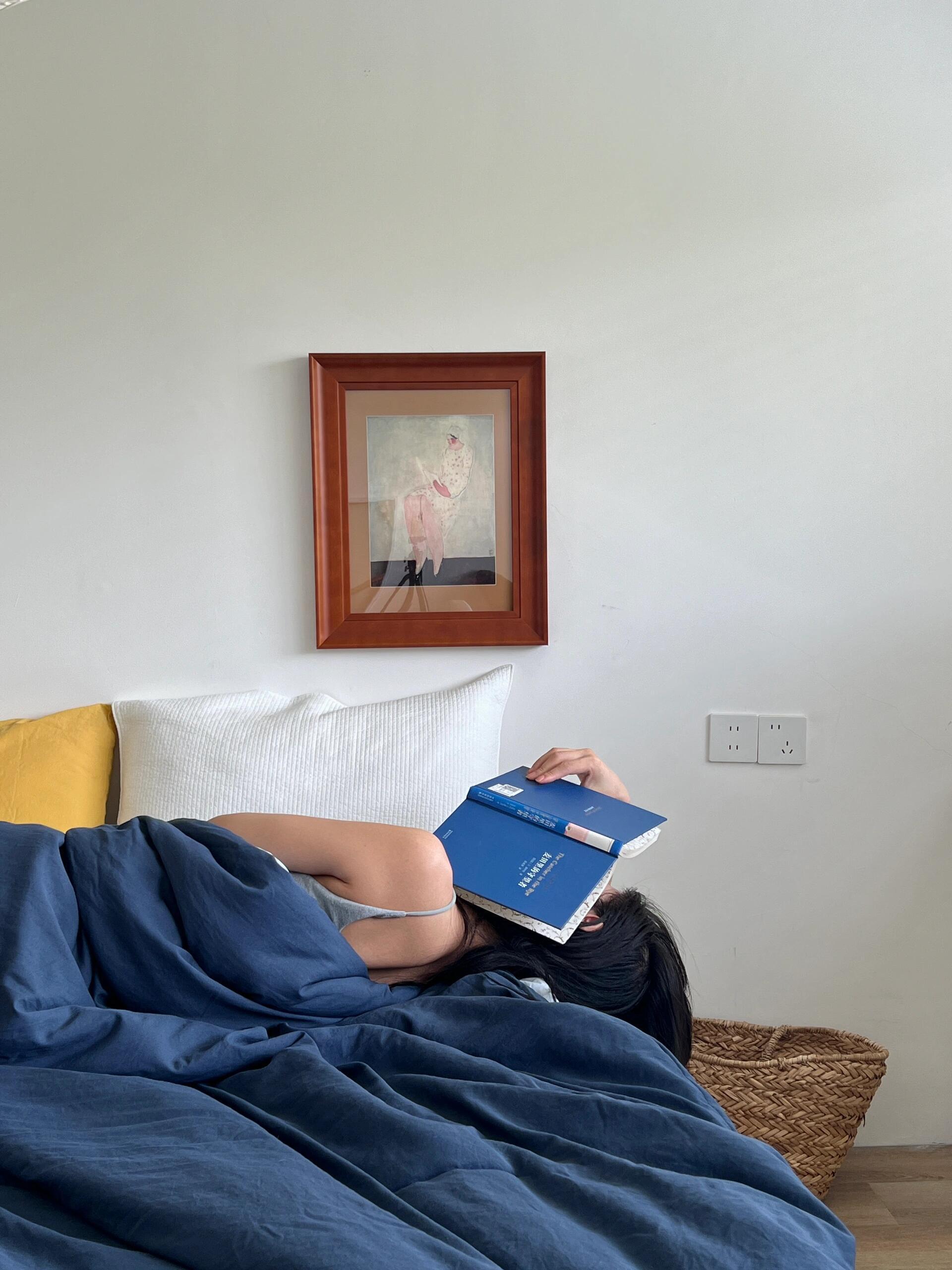 秋日的早晨,盖着这床深蓝色的被子醒来,就像睡在静谧的海边旅馆。