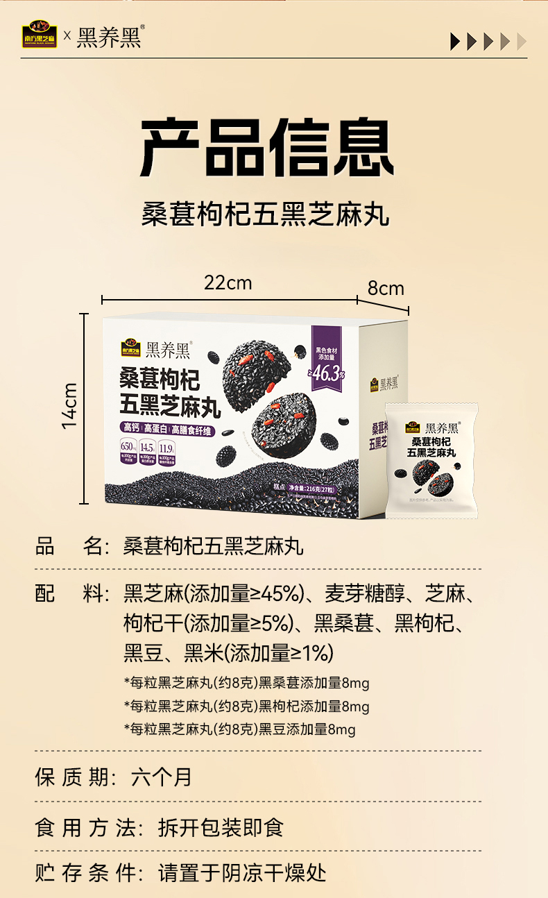 【品牌直营】新品上市·南方黑芝麻 桑葚枸杞五黑芝麻丸216g