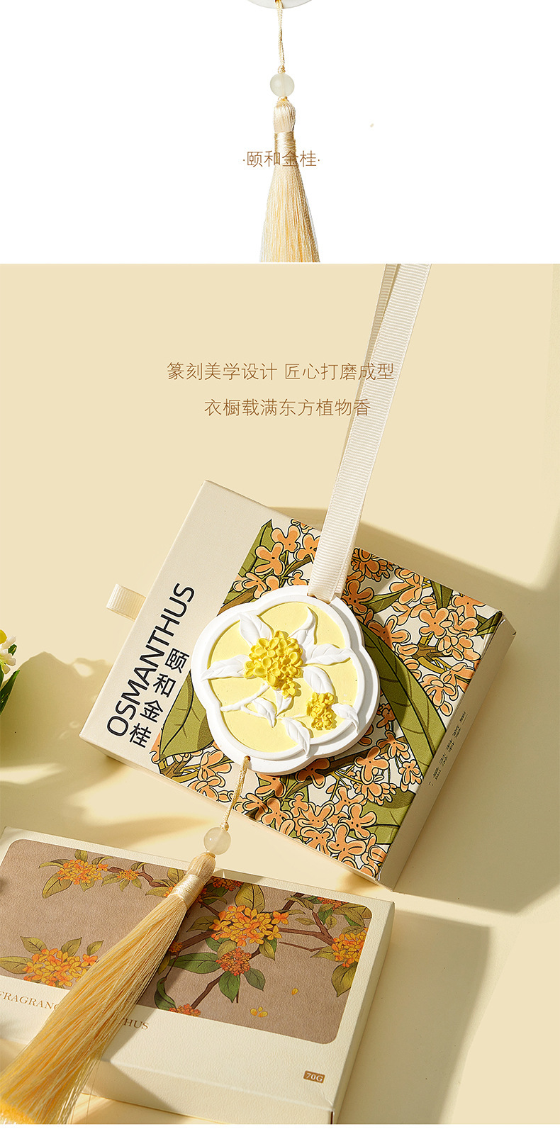 「9.9到手!东方韵味」桂花香香薰挂件 东方韵味国风香薰车载香片汽车装饰香氛挂件装饰